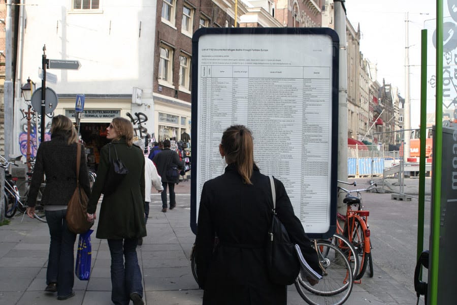 The Guardian published “The List” to mark World Refugee Day. Complied by United for Intercultural Action, “The List” details the documented 34,361 migrants who lost their lives within, or on the borders of Europe since 1993. Banu Cennetoğlu has utilized and distributed the document in various locations since 2003. Its publication in the Guardian coincides with an upcoming exhibition of Cennetoğlu’s work at the Chisenhale Gallery in London.