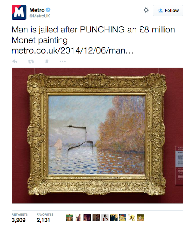 Andrew Shannon was sentenced to five years in prison for punching a hole through a Claude Monet painting. Shannon initially told the police that he damaged the painting, part of National Gallery of Ireland’s collection, to “get back at the state.”