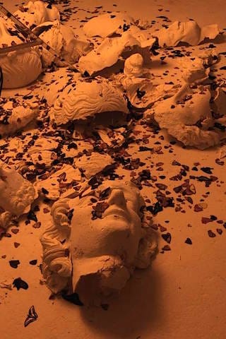French artist Loris Gréaud hired local stuntman to destroy around 40% of the work on display at the opening of The Unplayed Notes Museum, an exhibition of artifacts collected by the artist at the Dallas Contemporary and the Joule Hotel.