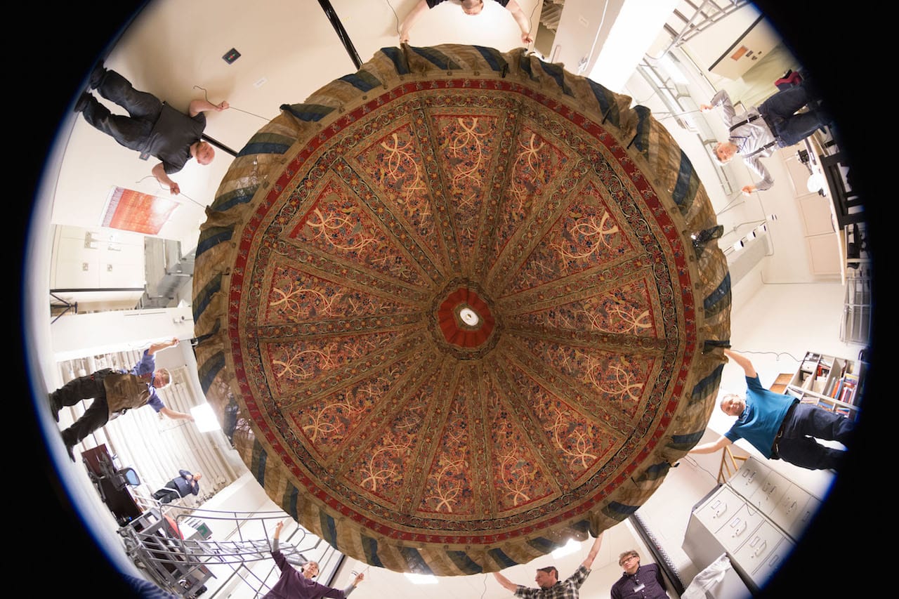 The Cleveland Art Museum acquired a 19th-century Persian imperial tent. Measuring 12 x 13 feet in diameter, the circular tent is inscribed to the Qajar Dynasty ruler Muhammad Shah.