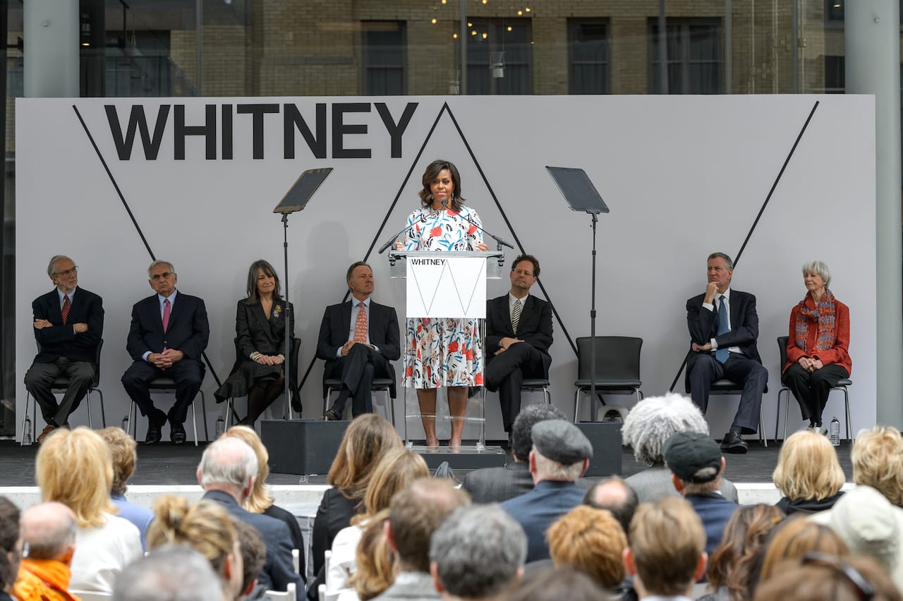 The new Whitney Museum officially opened to the public today. Yesterday’s dedication ceremony was attended by First Lady Michelle Obama and New York City Mayor Bill de Blasio. The Empire State Building will mark the museum’s opening with a special lightshow inspired by 12 works from the museum’s collection. The display will commence at 8pm tonight.