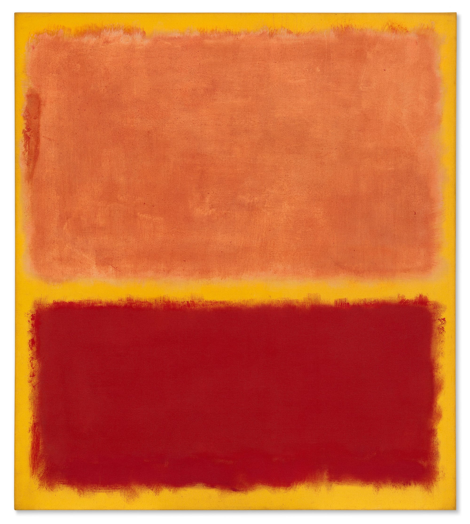 - Leading Christie's fall marquee sales is Mark Rothko's "No. 31 (Yellow Stripe)" (1958), a nearly seven-by-six-foot canvas in fiery red and orange on a scorching yellow ground from the collection of Robert F. and Patricia G. Ross Weis. A spokesperson for Christie's told Hyperallergic that the estimate for the work, which is available upon request, was “in the region of $50 million.” A comparably sized, warm-hued canvas fetched $46 million in 2023, but it lacked the moody red splash that anchors this piece; see, for example, "Untitled (Shades of Red)" (1961), which sold for nearly $67 million the previous year. It's just the thing for above the credenza, no?
