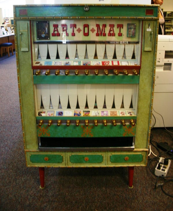 I was so intrigued by my experience that I couldn’t help but further investigate. Art-o-mat offers the work of artists from 10 countries, and from areas outside of art centers like San Francisco and New York. On the tail end of my trip I was pleased to pass the Doylestown library in Doylestown, Pennsylvania, home of another of the Art-o-mat’s. Though the program is noteworthy for bringing a diverse range of affordable art to cultural and commercial centers off the beaten path, there are also two in New York. That is what impresses me about this humble, but relatively ingenious initiative, it’s a reminder that art comes into our lives in so many way … you just have to pay attention.