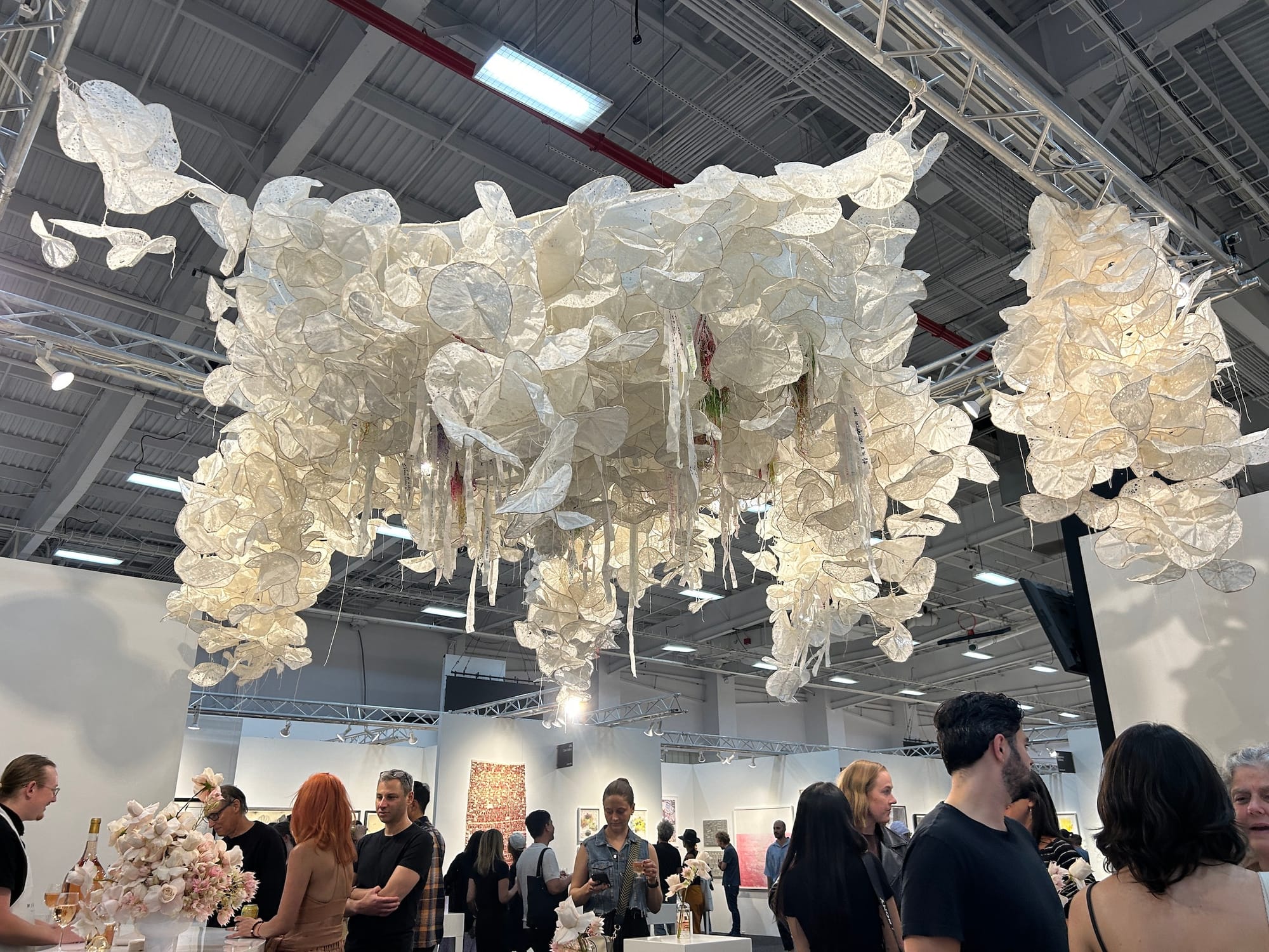 Art on Paper, a fair centering on modern and contemporary paper-based artwork, kicked off its 10th iteration yesterday, September 5, beside the East River with a fleet of 100 foreign and domestic medium-sized galleries scattered across a 70,000-square-foot network of booths. There are also several solo presentations on display, including a wall-based abstract installation by Brooklyn artist Elise Ferguson, shown by Kingsland Editions, and two metallic bamboo sculptures by Taiwanese artist Ching Ke Lin of Fremin Gallery.