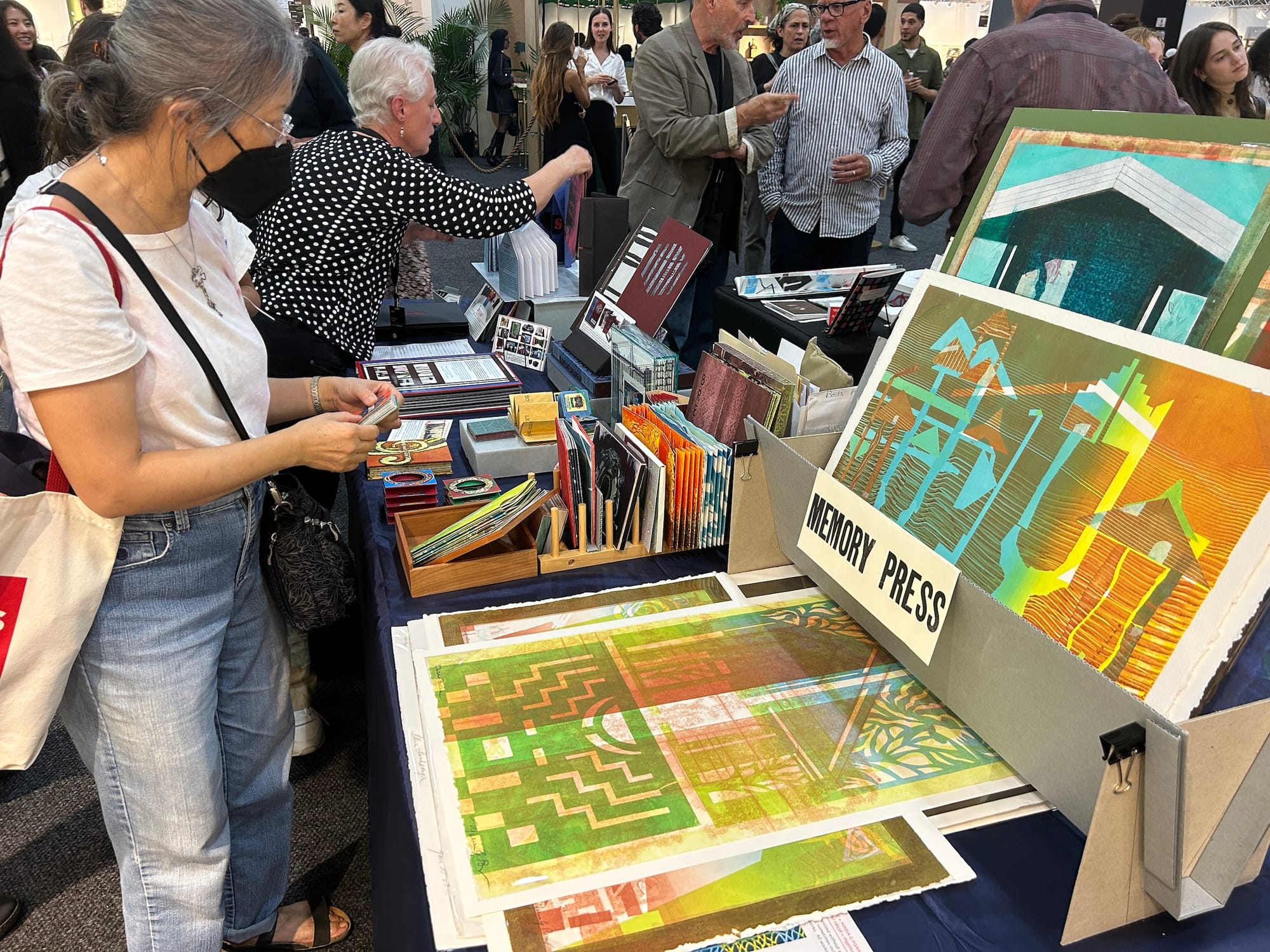 This was the second year the fair invited Brooklyn printmaking studio Shoestring Press to host live printing workshops, where visitors can attend in-person demonstrations and hands-on quick courses in methods including silkscreen and linocut throughout the show’s run ending this Sunday, September 8. The studio also has a second booth where works by its members are for sale, ranging from $75 to $9,000 — emphasizing the fair’s relative affordability, a draw for regulars who come back each year.