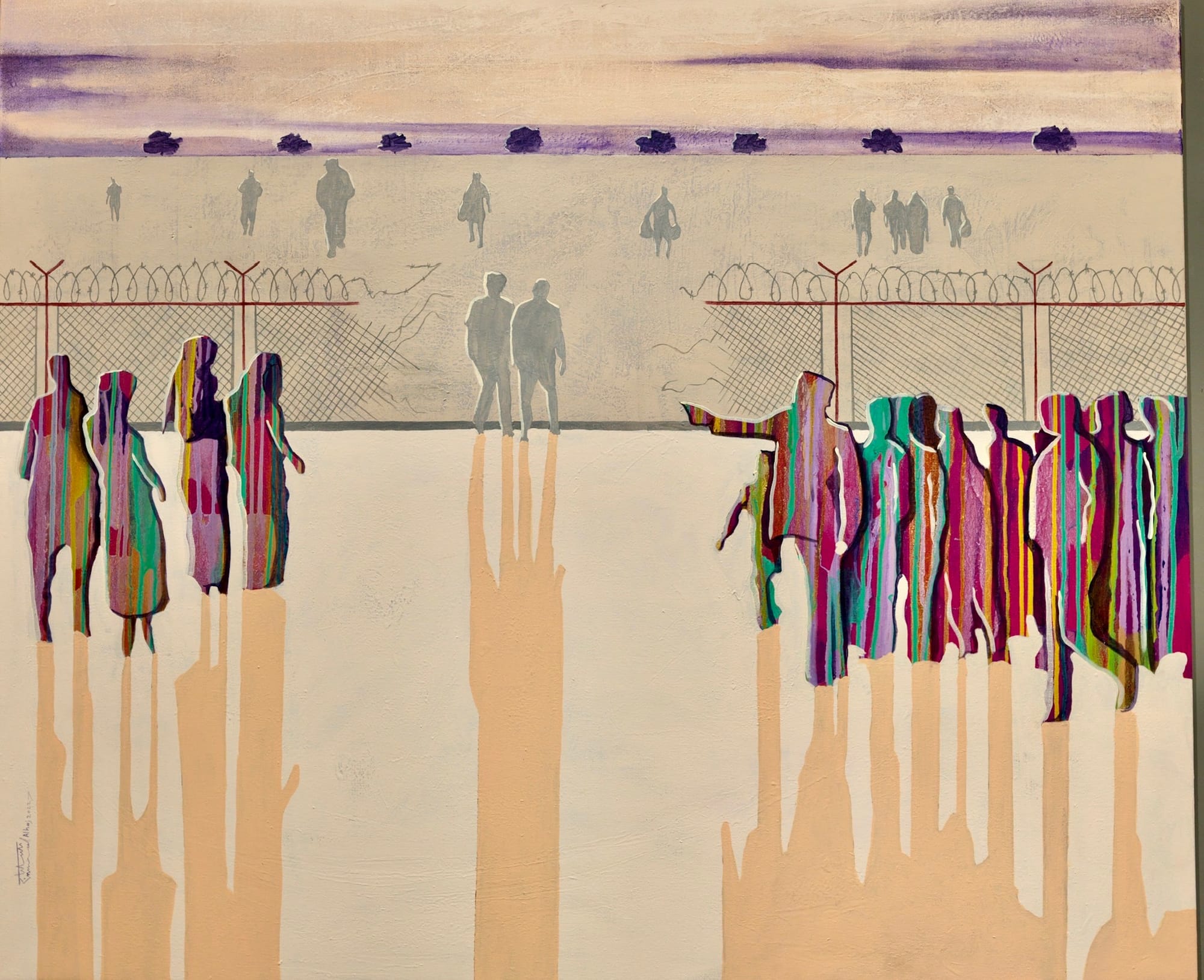 Mohammed Alhaj, “Movement” (2021), acrylic on canvas (image courtesy the Palestine Museum US)