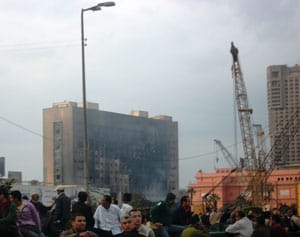 Meters away from Tahrir, the National Egyptian Museum, home to a famous and massive collection of Egyptian antiquities, is protected by three military tanks. No efforts, however, are taking place to put out the fire in the National Democratic Party headquarters and the Press Club building that started on Friday evening and continues into its third day.