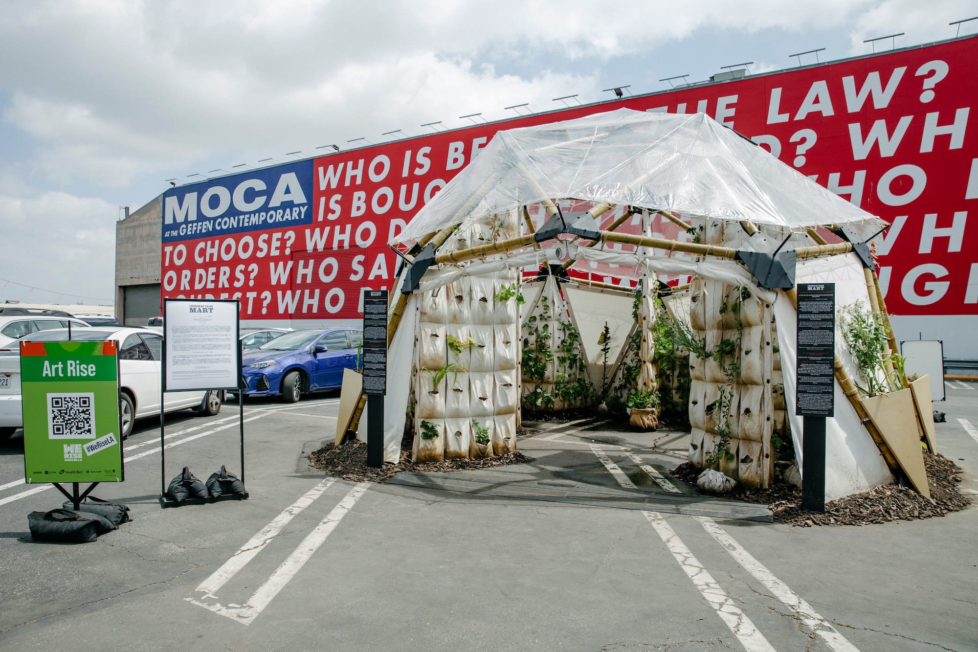 LOS ANGELES — You can now pick vegetables in the parking lot of the Geffen Contemporary at MOCA thanks to a living, breathing pod created by artist collective Crenshaw Dairy Mart. The edible installation, titled “abolitionist pod (prototype),” was created for Art Rise, the offshoot of We Rise, an initiative of the LA County Department of Mental Health in which exhibits, pop-ups, and programs emphasize healing and mental health throughout the month of May.