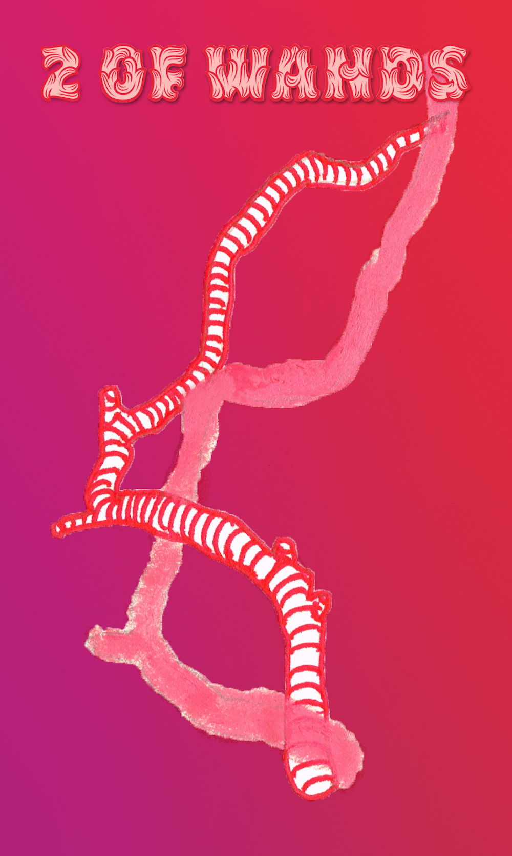 In the Two of Wands, two branches merge and intersect. Witnessing something like this is always a beautiful moment on my hikes in nature, or when I’m tending to my plants. The wand’s energy is the qi, the spark of life, and you’re being asked to look at the little things growing in your life right now. Perhaps there is a new branch in your creative practice, or someone in your life is sparking a new collaboration. Your Earth energy will be helpful here. Like a gentle gardener, practice tenderly watering these new directions, grafting them, seeing where they go. By this time next year, you may be surprised where your creative practice has taken you.