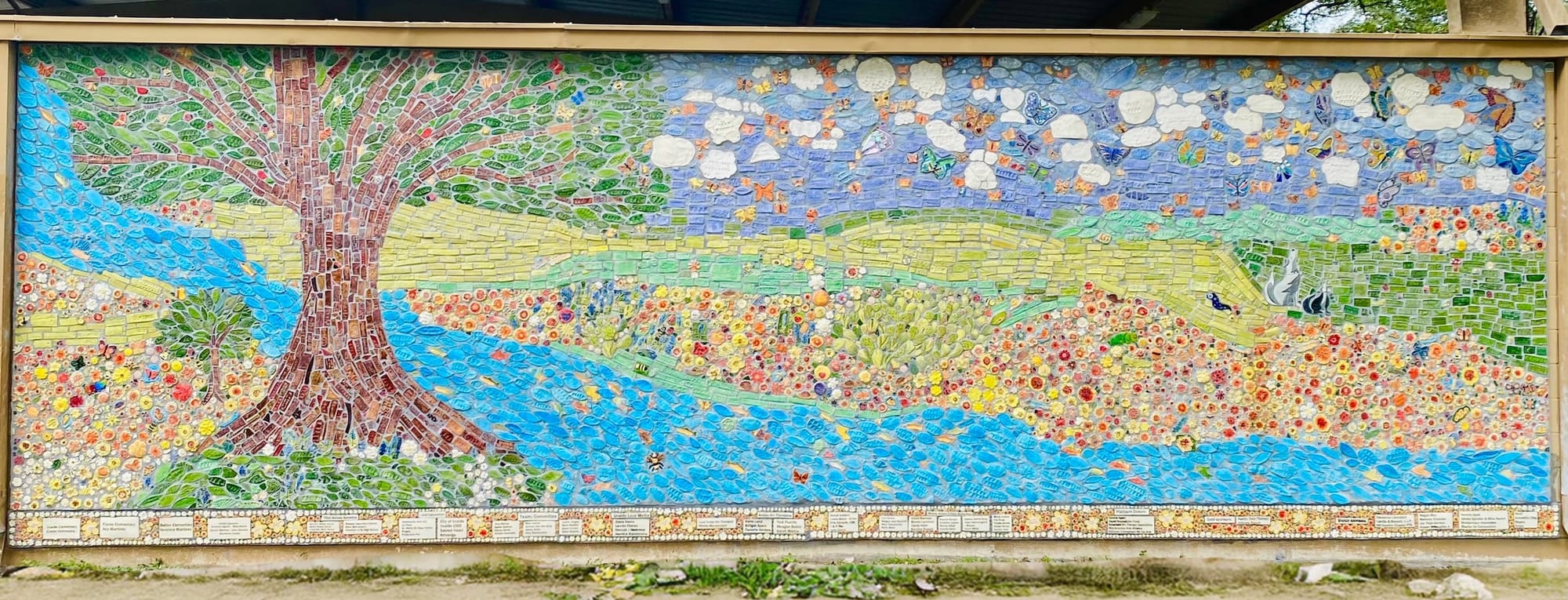 In Uvalde, survivors and community members wrote the names of the 21 individuals who died in the Robb Elementary shooting on the tiles. Other tiles featured hearts, butterflies, and animals. “The mural just happened because of the therapy, but the primary focus really was the therapy,” Montemayor said. “They had something to do together that kept them going.”