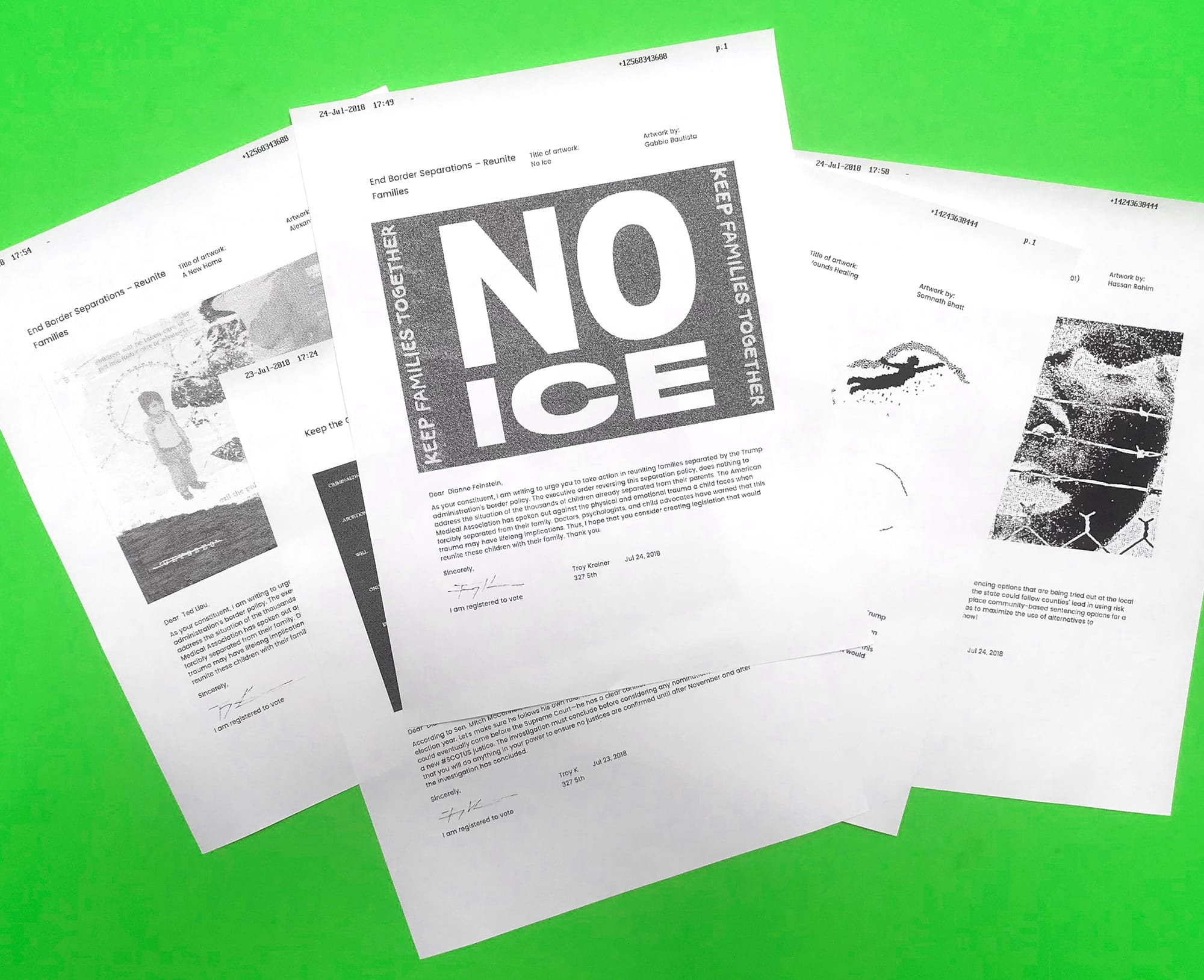 The Los Angeles-based design studio Use All Five has expanded its Artifax project, which uses original artwork as letterheads for messages to local representatives.