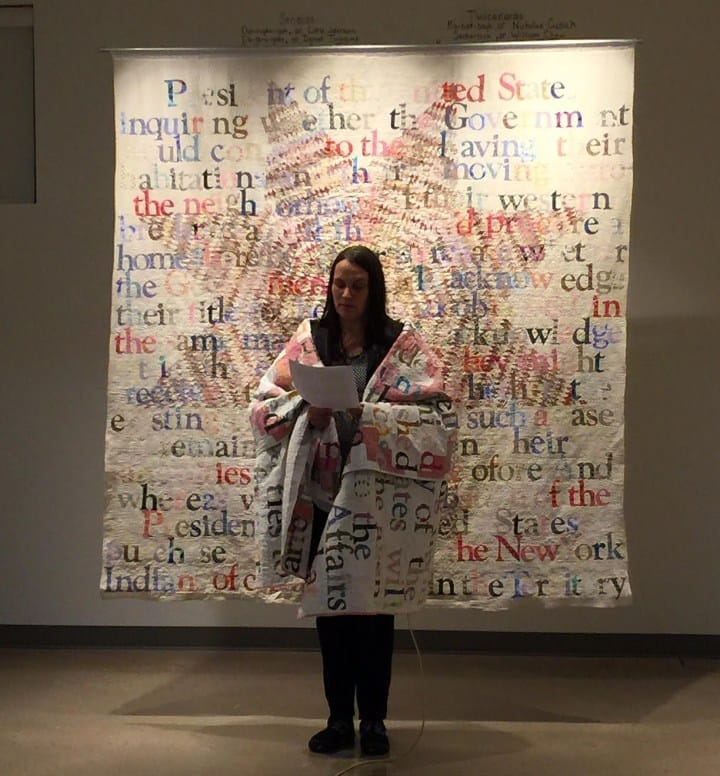 Before assuming her post at Emily Carr, Adams was an assistant professor of visual art at Naropa University, a small, private college in Boulder, Colorado. When she joined the faculty in August, Adams was introduced in a university announcement as “a contemporary Indigenous hybrid artist of Ojibwa Anishinaabe and Lakota descent of Waabonaquot of White Earth Reservation in Minnesota.” (On Adams’s website, her bio specifies that she is “a descendant of both Indigenous (Ojibwe) and colonial Americans.") Adams taught a required first-year class and a class entitled “Aboriginal Material Practice,” which focused on techniques employed in traditional and contemporary Indigenous art.