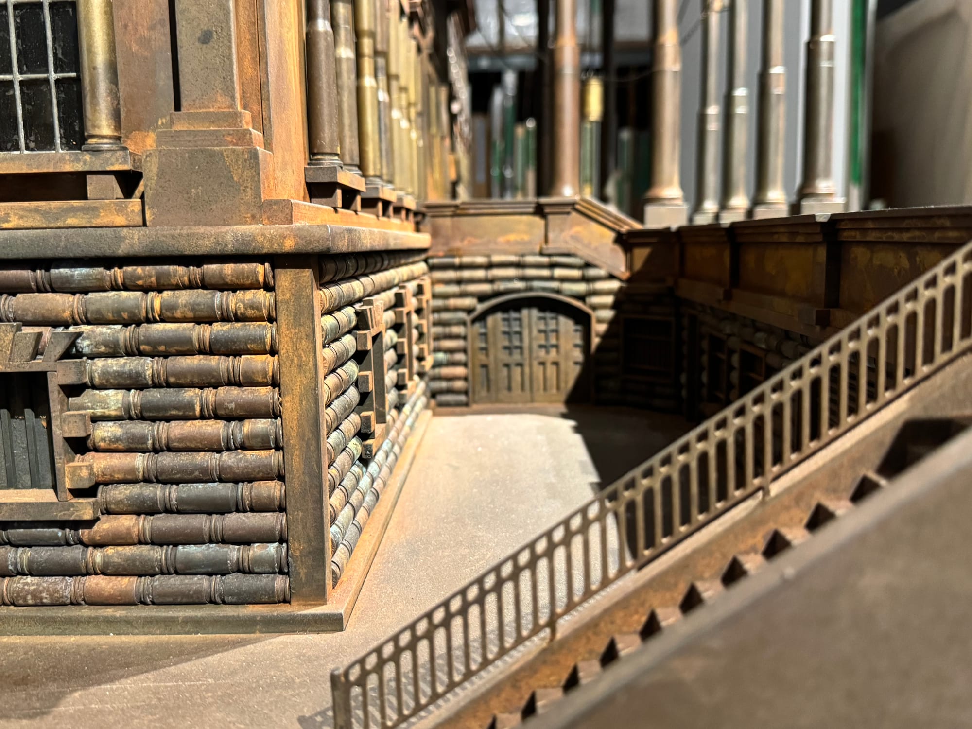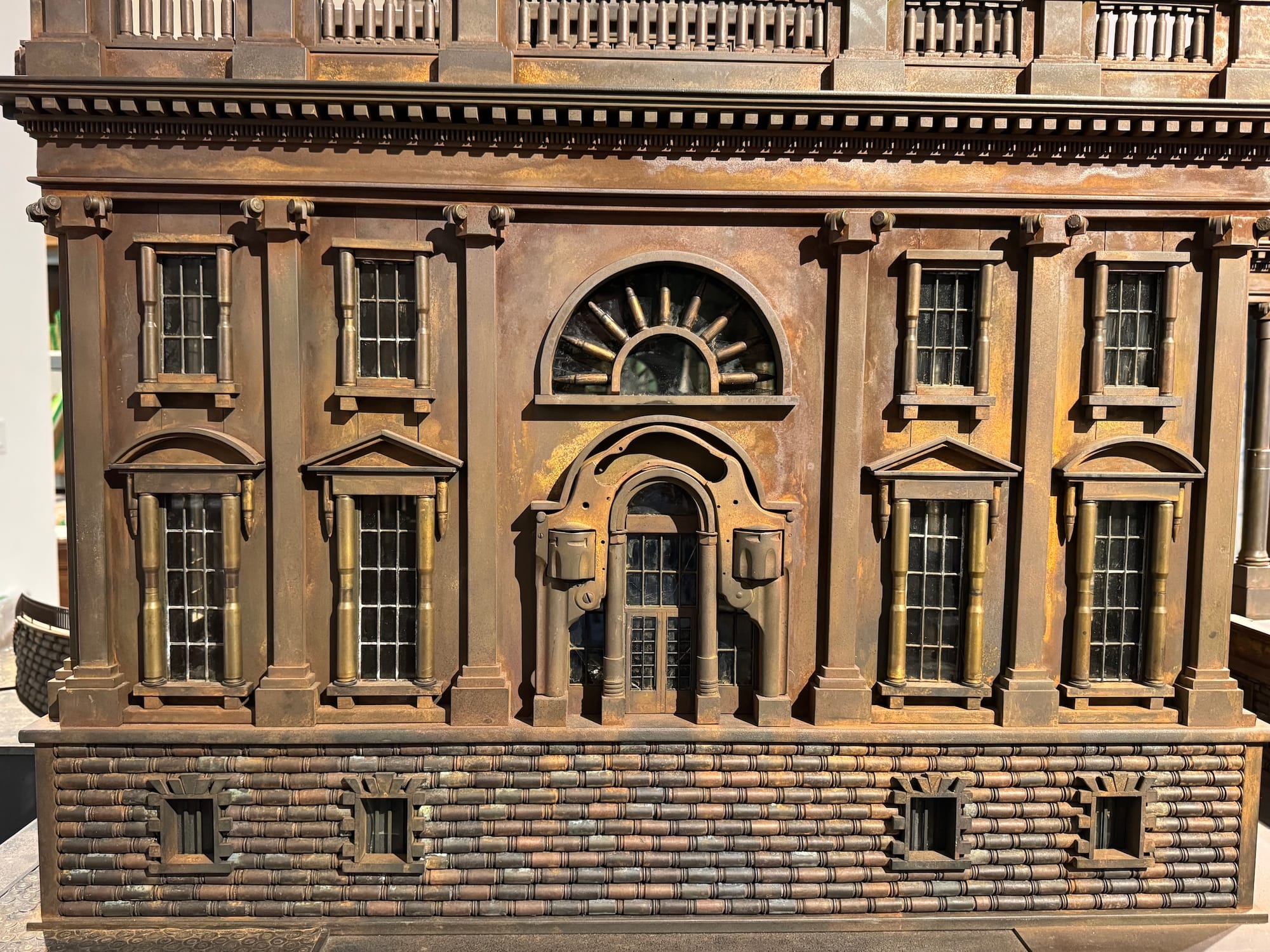 Rather than scaling the work based on the White House, Farrow based the dimensions of his presidential residence on the barrels of machine guns, 18 of which he used to create columns.