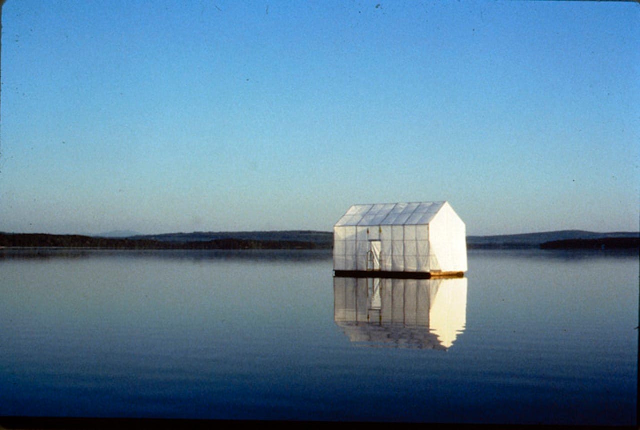 GF: I spent a summer at the Skowhegan residency in Maine. The camp overlooked a lake. I taught myself to swim so that I could take the measurements of a floating dock anchored there. Over a few weeks, working after midnight and in secret, I welded a steel house to mount to the dock. When it was finished, I enlisted two friends to help me pull up the dock’s anchor in the middle of the night and paddle the dock to another part of the lake. We installed the steel house and pinned sheer white fabric to it, leaving the bottom portion of the “walls” loose, so it could blow in the breeze, and so that swimmers could still use the dock. We left one side of the roof open, so the sun still came in.