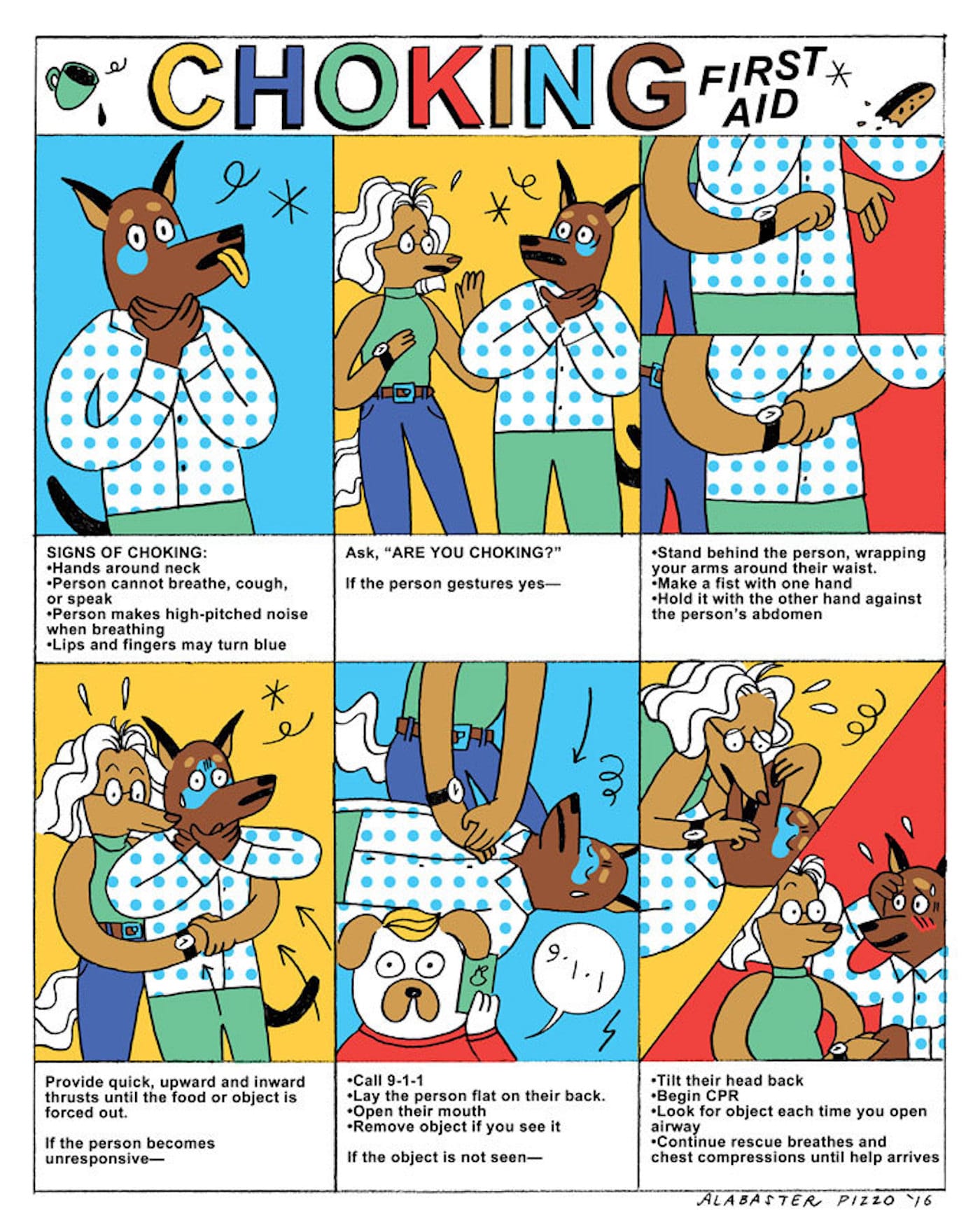 Many artist-created compliance posters serve as fun standalone designs, like something you might find for sale at the New York Art Book Fair. A few businesses are marketing them as collectibles: Morgenstern’s sells illustrator Jessica Che’s Tarot card-themed Choking First Aid poster for $70 on its website.