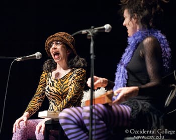 I tried to put aside this concern when I got to Ann’s house to rehearse. She now happened to live in the same Venice neighborhood that I did, composing music for theatre and art projects and working at a law firm for her day job. She looked the same as she did ten years before, still wearing her white girl dread locks. For three days, in between her work schedule, we practiced and laughed. The songs came back to us easily, engraved in our brains. But Ann thought it was weird that we were going to play at what seemed to her like a stodgy academic affair. Stuck doing academic grunt work, I saw things a little differently. I have been to many a stodgy academic affair and usually artists aren’t invited nor consulted. It sounded like a fun and funky event to me, though I was still confused as to how we could contribute to the theme of science and art converging in our present era.
