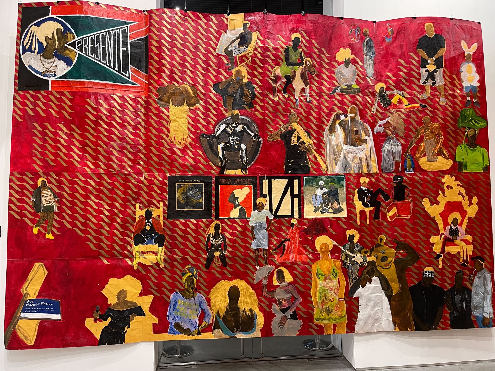 Inhotim's exhibition Quilombo: vida, problemas e aspirações do negro ("Quilombo: life, problems and aspirations of the black people," per the museum's own translation) opened November 19. The term quilombo is used to describe communities in Brazil founded by formerly enslaved people, and the exhibition's title references the name of a 1948–1950 newspaper led by Abdias Nascimento, a 20th-century intellectual and artist who founded Brazil's Black Experimental Theater, Museum of Black Art, and Institute of Research and Afro-Brazilian Studies (IPEAFRO). Inhotim presented the 33-artist show as part of a larger initiative launched in 2021 titled Abdias Nascimento o Museu de Arte Negra ("Abdias Nascimento and the Black Art Museum") in partnership with IPEAFRO.