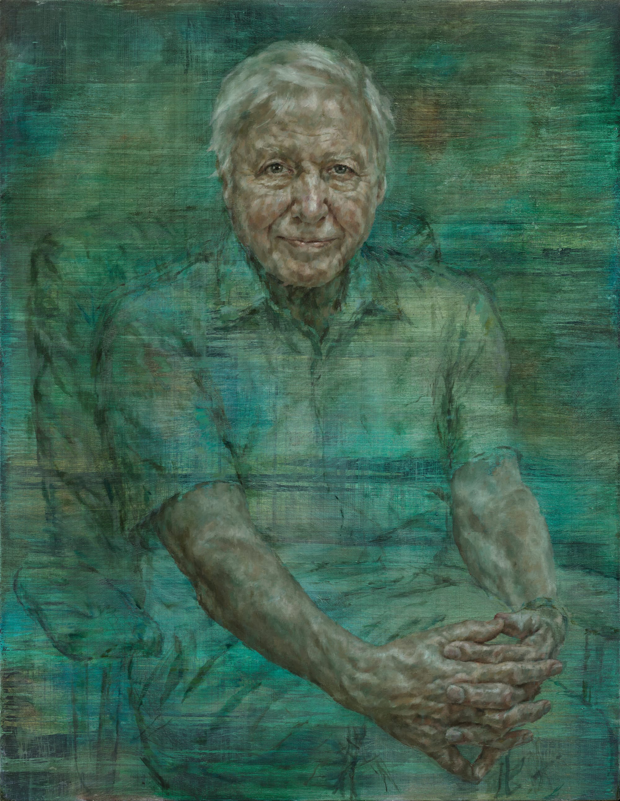 After raising eyebrows for painting the crown red in May, British portrait artist Jonathan Yeo returns with a completed commission of Sir David Attenborough to celebrate the biologist's 40-year fellowship with the Royal Society. Yeo exchanged King Charles III's fiery red military uniform and background for a splashy greenish teal setting to portray the scientist and broadcaster in his natural element.