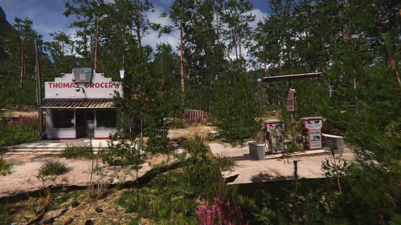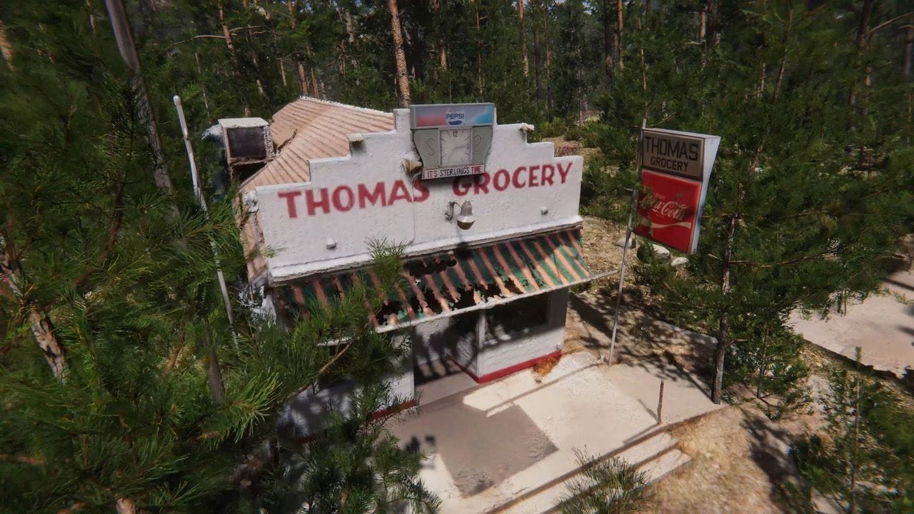 To capture the area, Safavi used photogrammetry to take digital portraits of the building at every angle. Combining hundreds of images with 3D scanning technology, triangulation, and 360-degree video, he created a realistic depiction of the building’s current facade and architecture. “The area is very dry and the digital piece is a very lush environment,” Safavi says. “I took [an image of the building] and inserted it into a game engine and added this lush environment to make it look like the building just appeared and ended up in this natural space.” The artist wanted to give Thomas Grocery and Pump a hyperreality to allow space for meditation on the history of the store and leave those added elements open to interpretation.