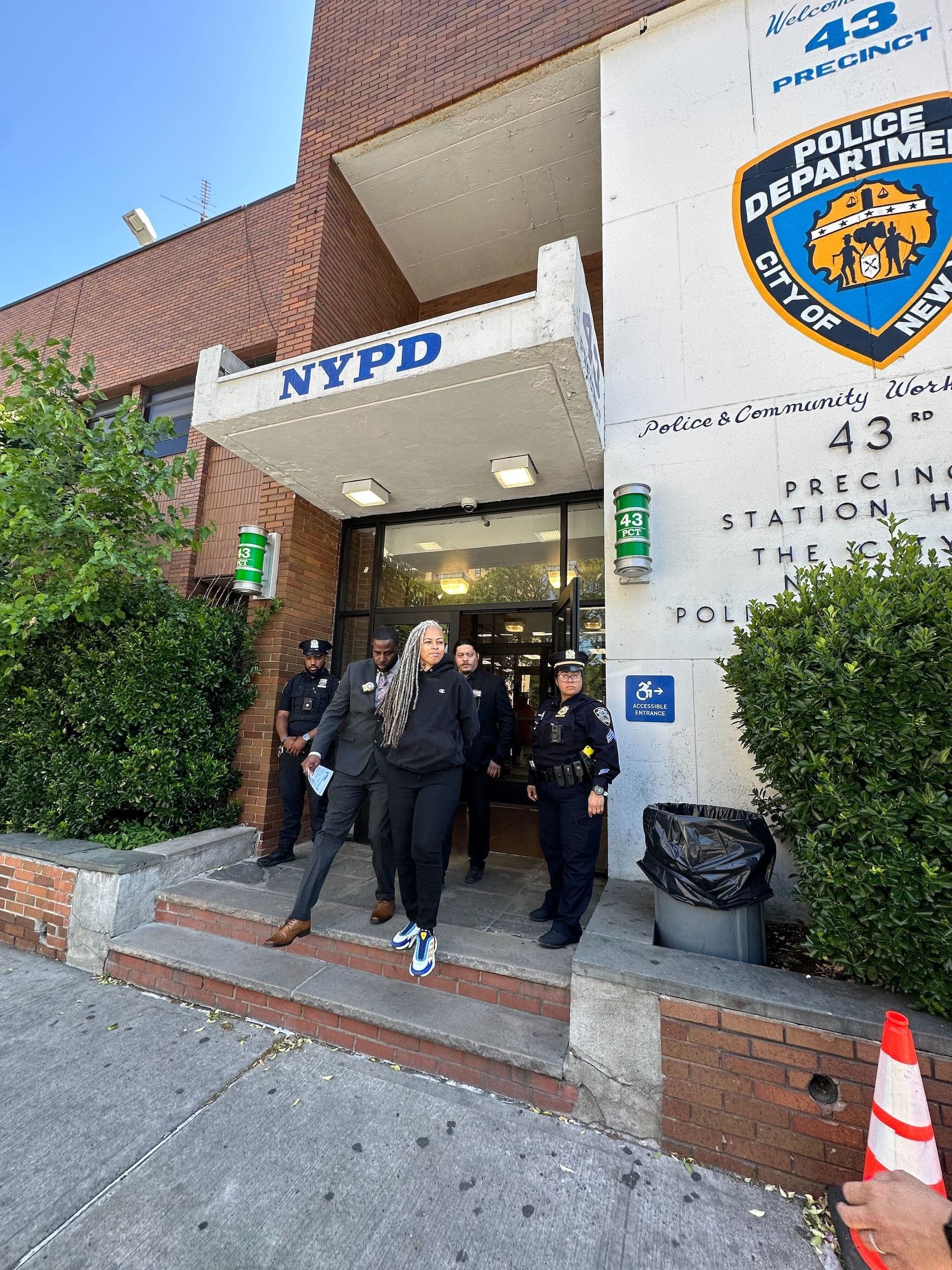 At the scene of the arrest outside the 43rd Precinct today, two reporters and seven supporters were present as well as a videographer, as witnessed by Hyperallergic. An NYPD spokesperson said Rodriguez faces charges of menacing and harassment related to her altercation with New York Post reporter Reuven Fenton earlier this week.