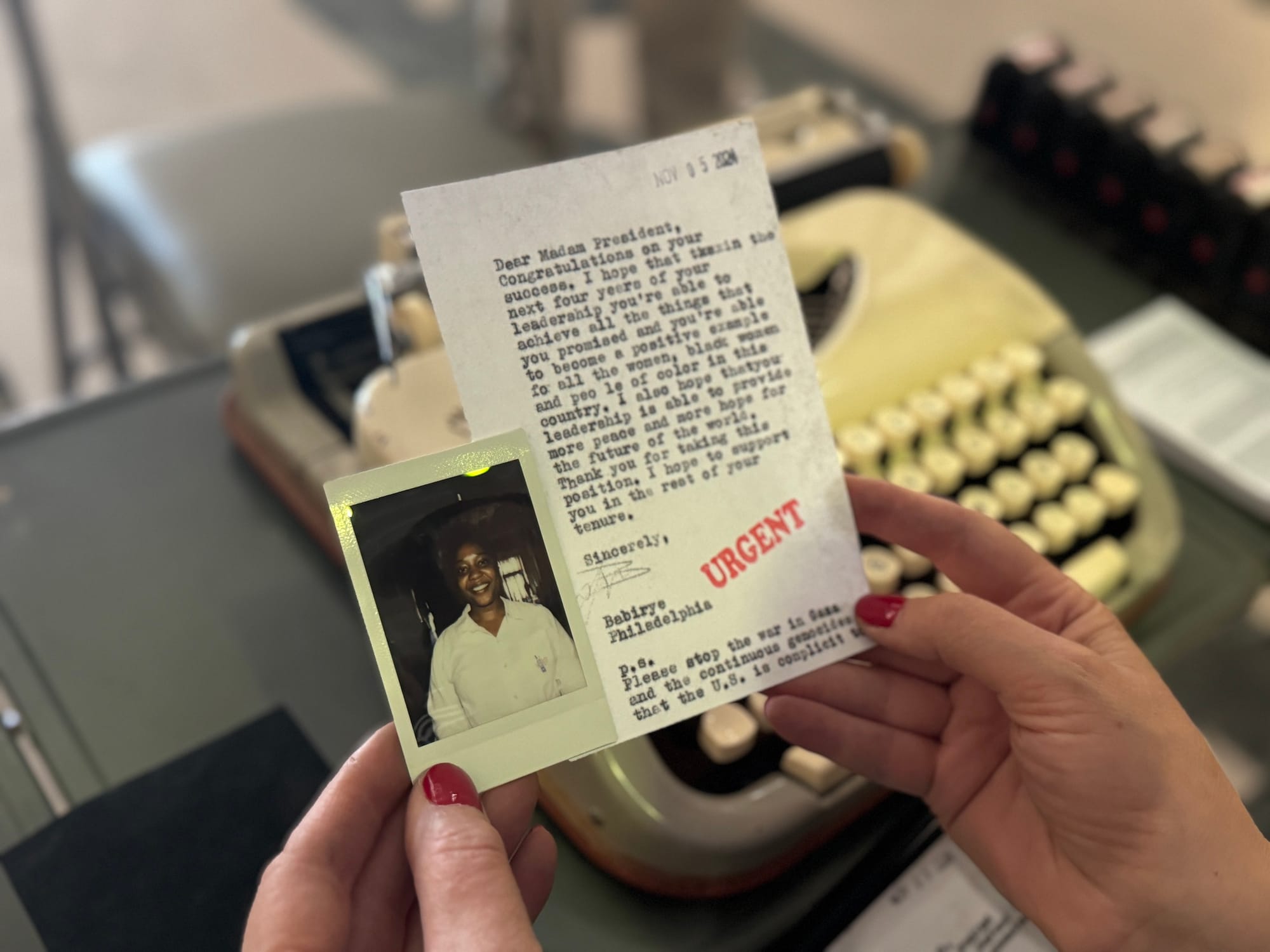 This year, some participants are choosing to open their letters with the salutation “Dear Madame President,” for the second time in US history, as seen in photographs of postcards shared by Oring.