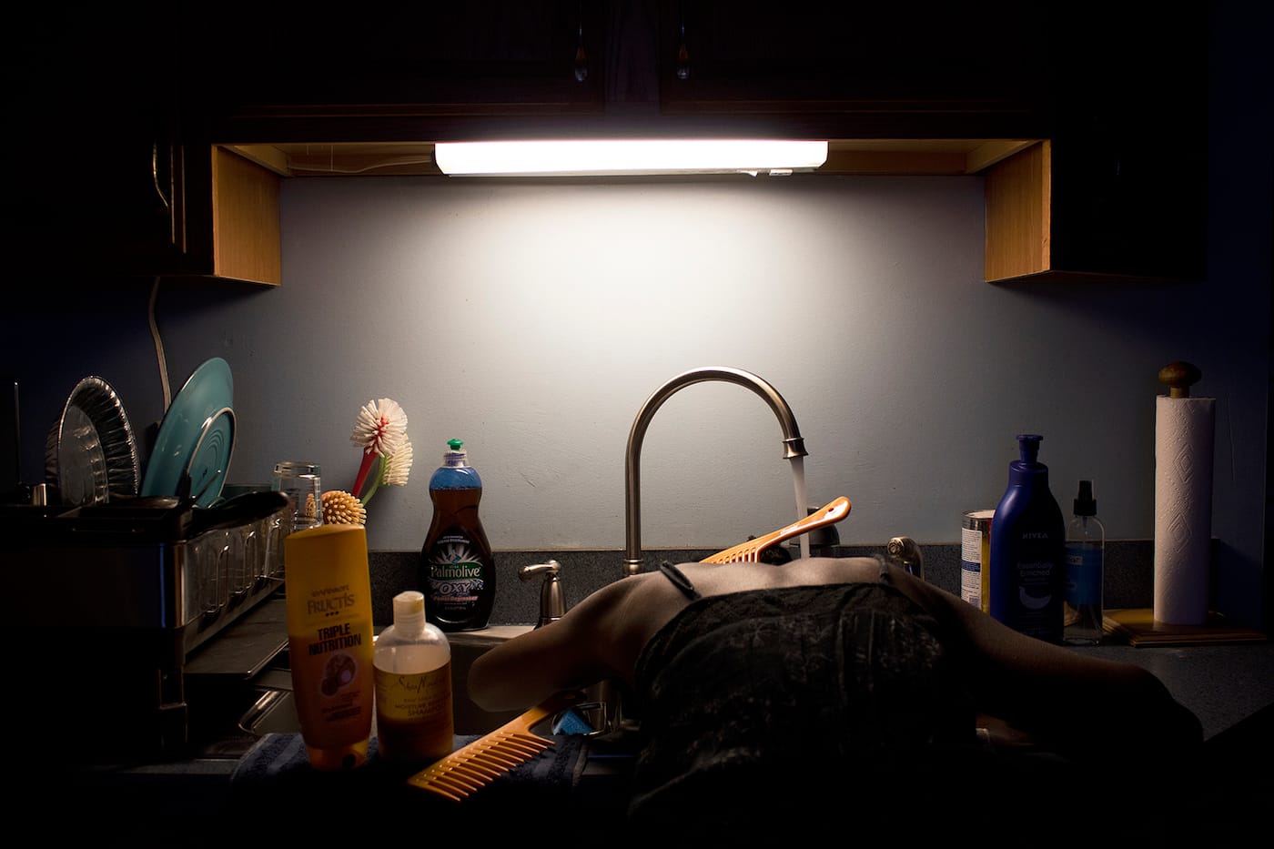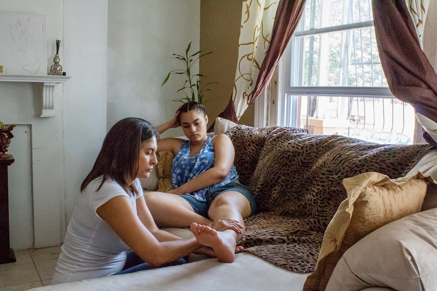 On September 22, the women opened their first exhibition at the Boys and Girls Club in Juniata Park, a North Philadelphia neighborhood far from the city’s major art institutions. Next to Afaq’s self-portraits, Carrie Anne Shimborski showed a photograph memorializing her brother Peske’s death from a heroin overdose in 2015. In the image, a black-and-white print of the last photo Shimborski made of her brother washes up — or, perhaps, away — on the banks of the Delaware River.