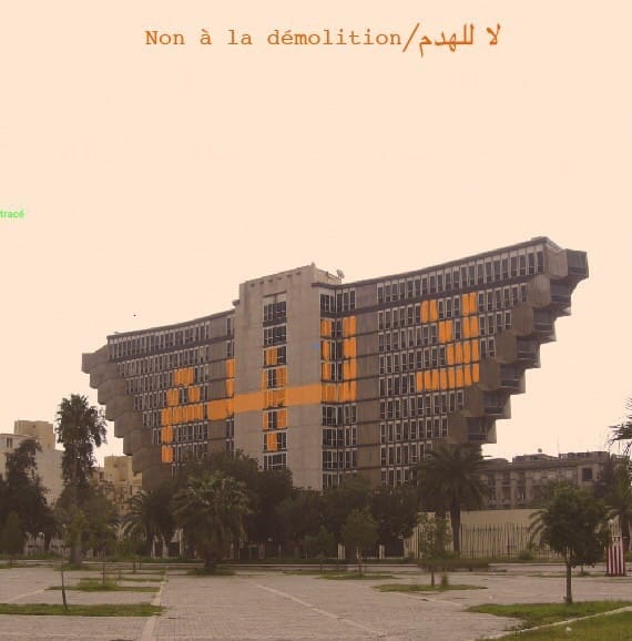 For years now, the Hôtel du Lac has been under threat of demolition. Now, two Tunisian artists, Mouna Jemal Siala and Manna Jmal, have launched an online campaign to raise awareness of its impending disappearance. Titled "Non à la démolition" ("No to demolition"), the project consists of photographic interventions that transpose the eponymous message in Arabic to the building's facade.