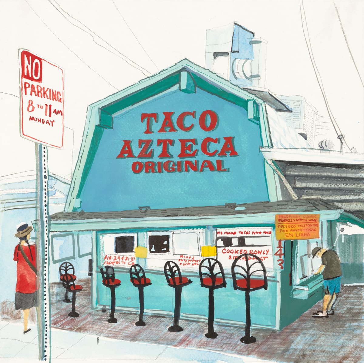 The idea for the calendar project developed when Henderson was a child drawing monsters over the illustrations in his father’s chemist trade calendar. The first year, he produced 25 copies and sold all of them, encouraging his pursuit to capture both the architecturally compelling and the comical. Along with their creative practice, Ali works as an illustrator and Henderson as an announcer for NPR’s LAist, labeling himself as both an artist and entertainer.