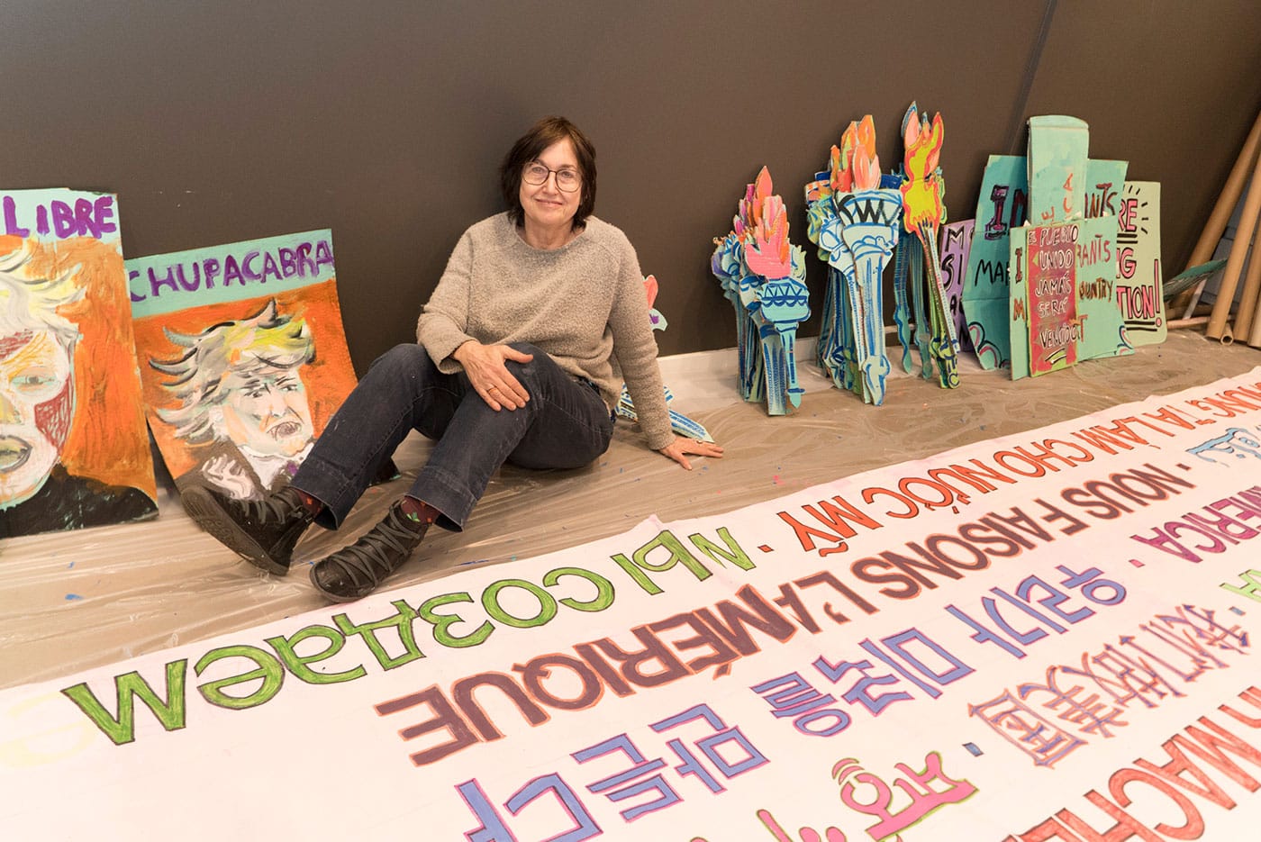All of this began as a spontaneous reaction to the kick-in-the-gut feeling so many experienced on the day after the election. De Los Angeles was working as a studio assistant for artist Joyce Kozloff, and the two immediately wanted to take action, so they put out the word to immediate friends. Kozloff, who shows with DC Moore Gallery, is a veteran of several waves of political action groups, including the feminist art collective Heresies and the more recent Artists Against the War, which protested the US invasion of Iraq after 9/11. “As soon as I read about the Women’s March on Washington, I envisioned the great marches in American history and thought this could be one of them,” she says. “The world’s media will be there for the inauguration, and that picture of the streets filled with protestors could be on the front page of the world’s newspapers the next day. I decided: let’s contribute to this in some way.”