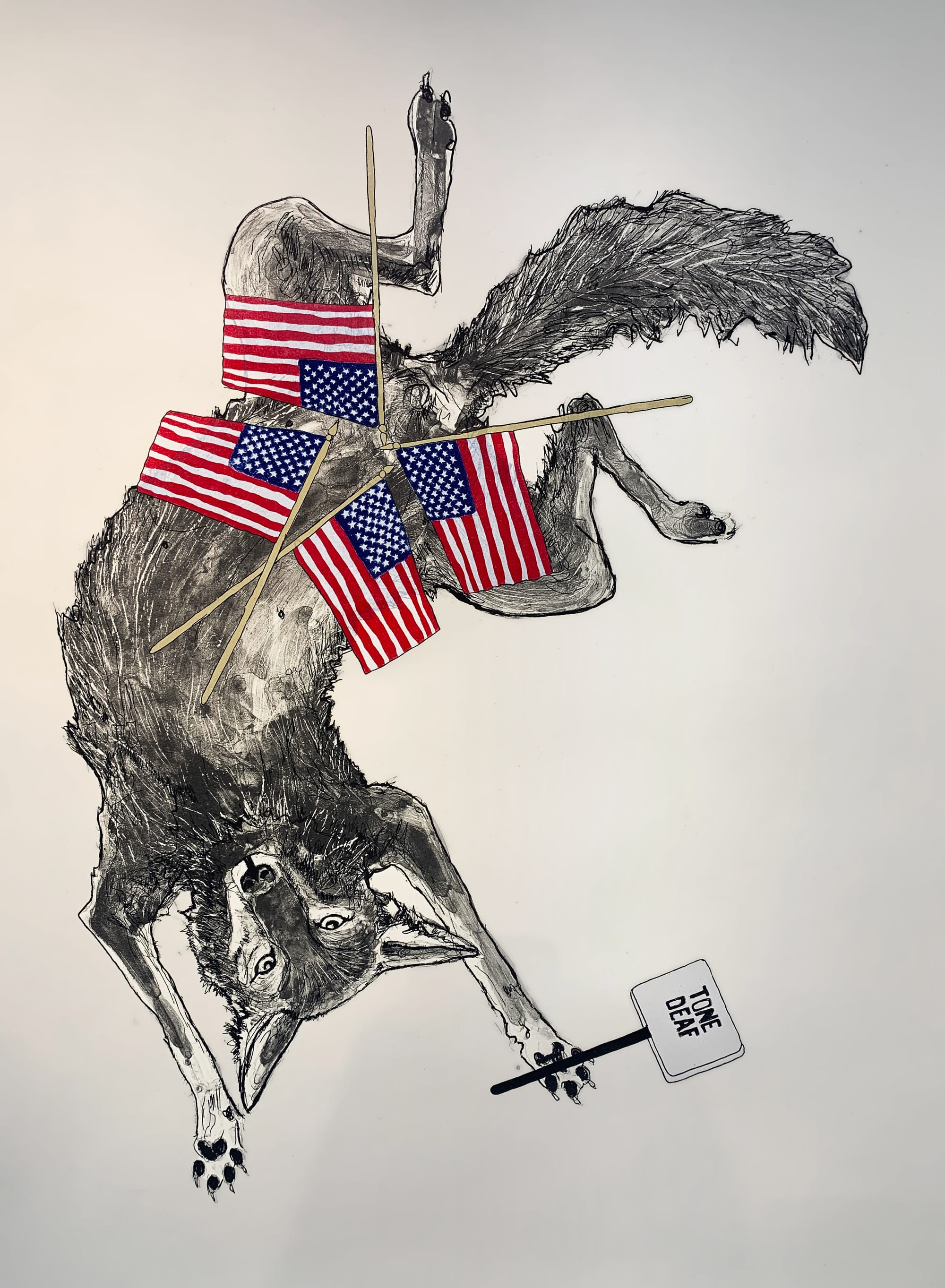 It has only been since 1965, with the passage of the Voting Rights Act, that all American Indians and Alaska Natives had their voting rights guaranteed in all US states. Currently, in 2020, many American Indian people are still encountering voting barriers. The prevention of IDs issued by tribal authorities and the barring of PO box use instead of physical addresses are becoming pretexts for continued suppression. Six out of 10 Native voters support the Biden ticket in expectation of these and other issues being positively addressed in Indian country. Many Republican and Independent Native voters have also supported Biden. As a member of the Ponca Tribe of Oklahoma, I voted for Harris and Biden by mail from St. Paul, Minnesota. For the last six months, I have worked on a series of political artworks about facets of our crisis, most recently in collaboration with Highpoint Printmaking Center in Minneapolis, with a series of lithographs.