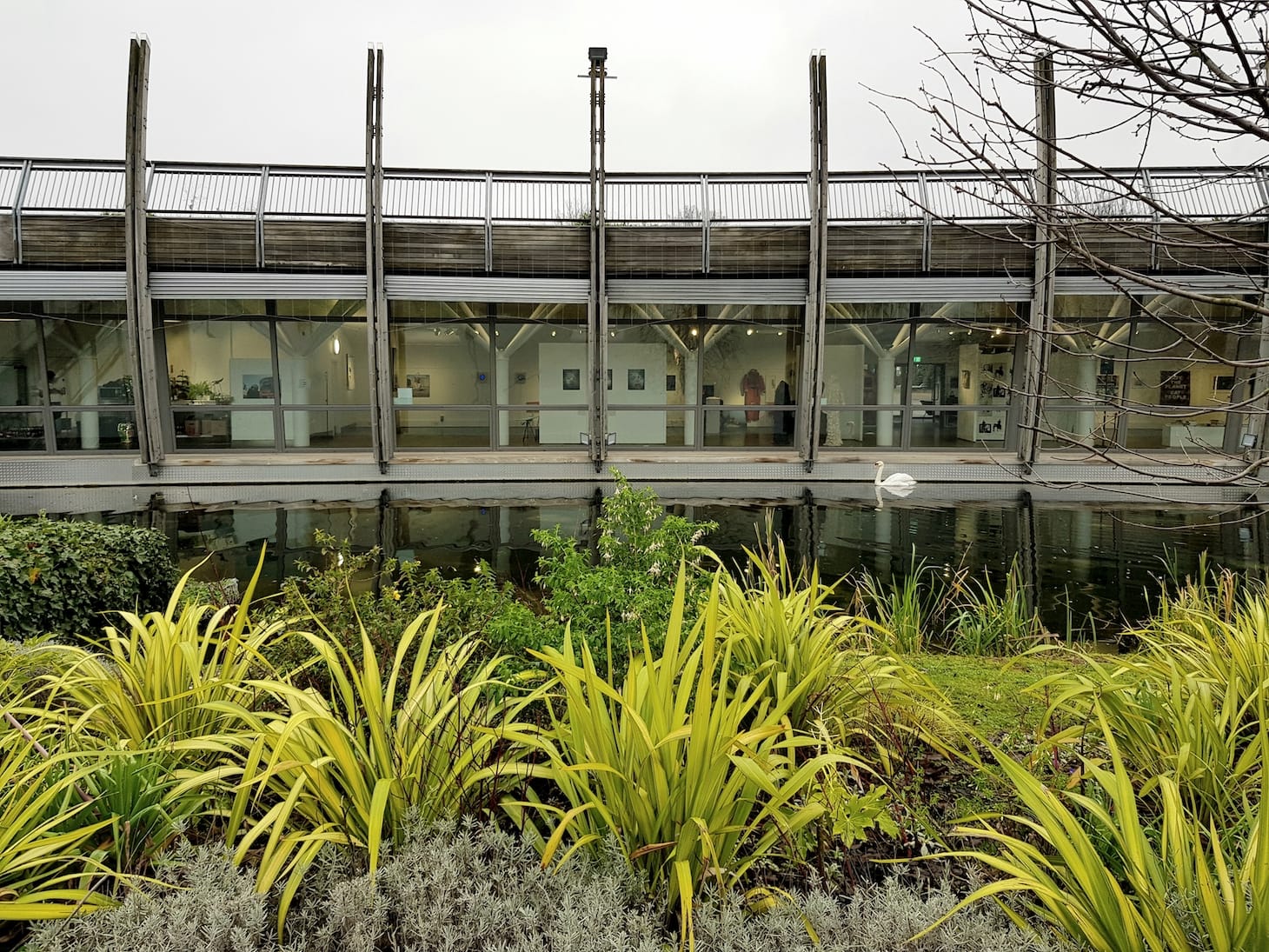 LONDON — The glass front of the Art Pavilion in London’s Mile End Park looks out onto a large pond which is home to a wide variety of birds; coots, ducks, moorhens, seagulls, and pigeons all come here to rest, wash, and feed. A swan glides past slowly, craning its neck to look beyond its glassy reflection and apparently peeking in at the artwork inside the pavilion.