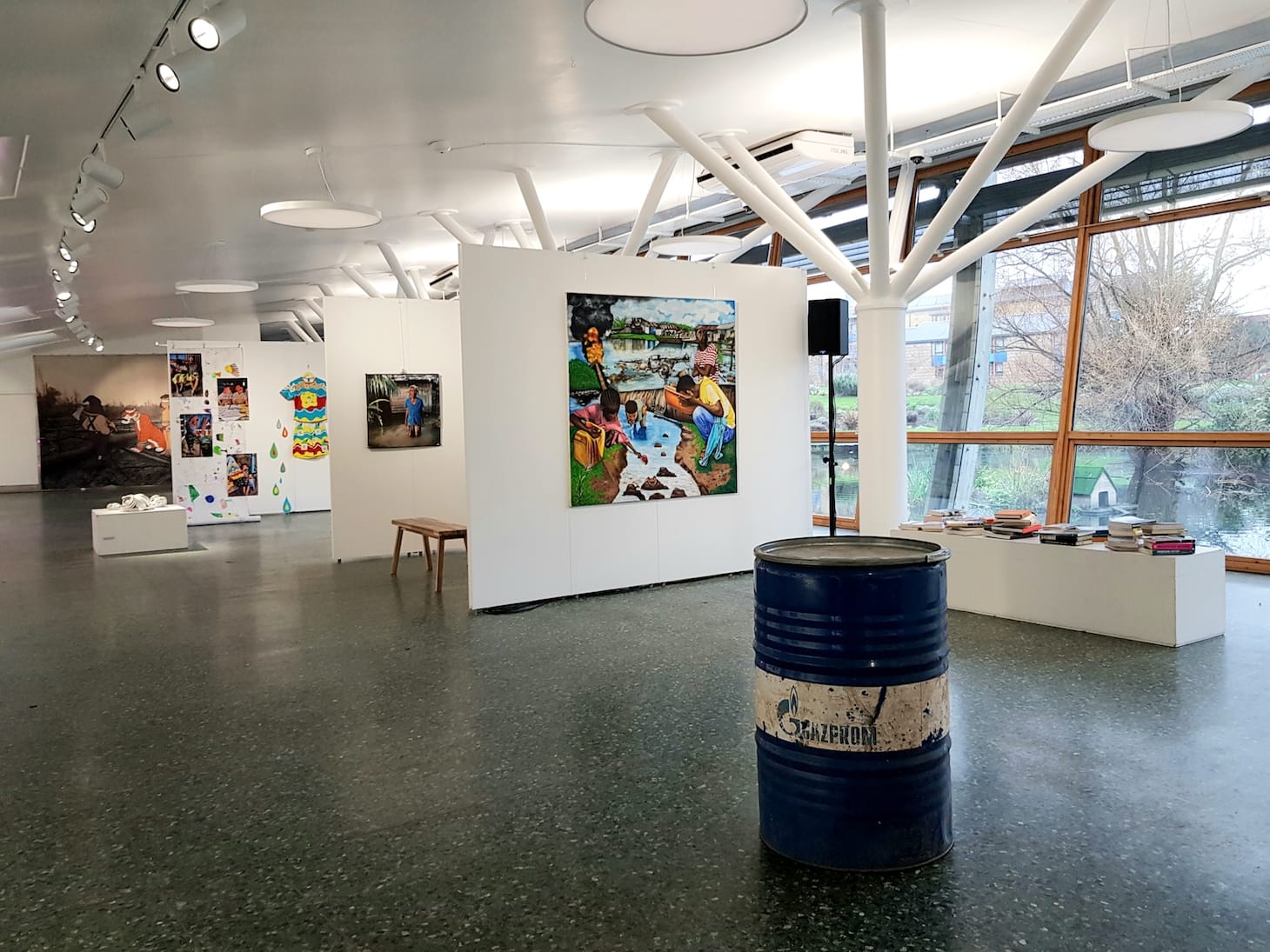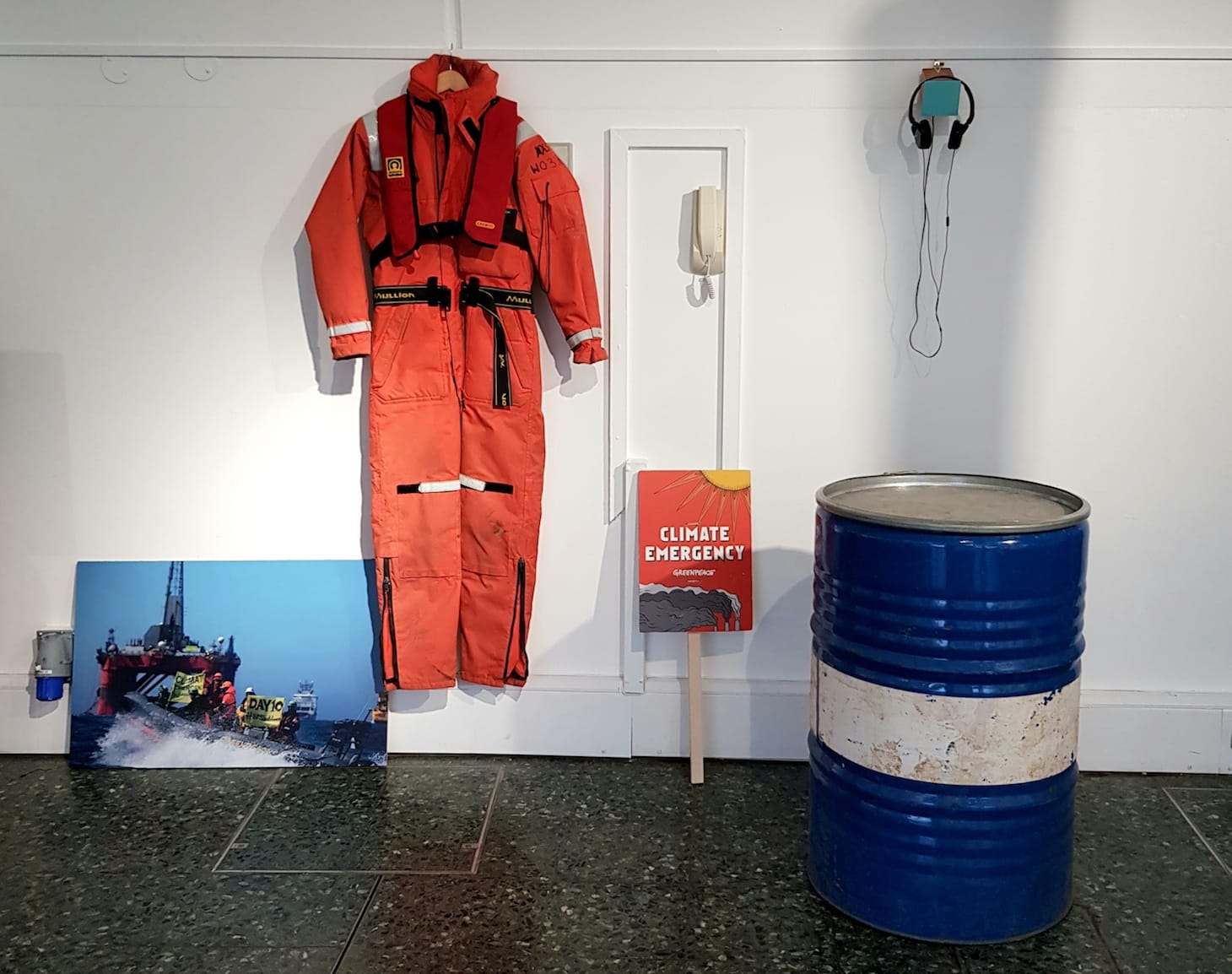 The exhibition is dedicated to artworks that grapple with the causes and legacies of climate breakdown. These narratives are closely interwoven with the stories of climate activist movements, and the exhibition also features protest items contributed by groups such as Greenpeace and Extinction Rebellion, such as a dry suit worn on an activist intervention at sea.