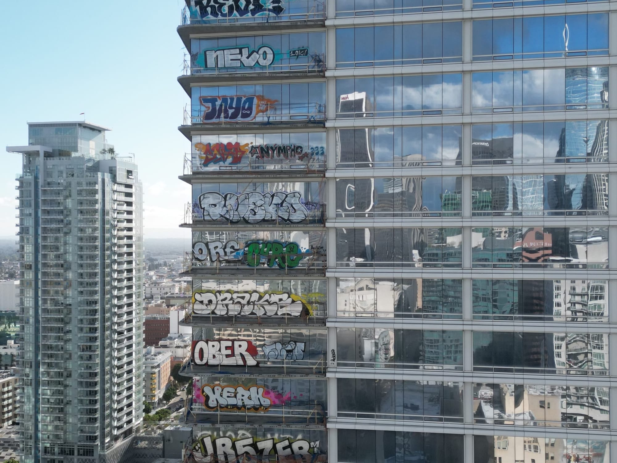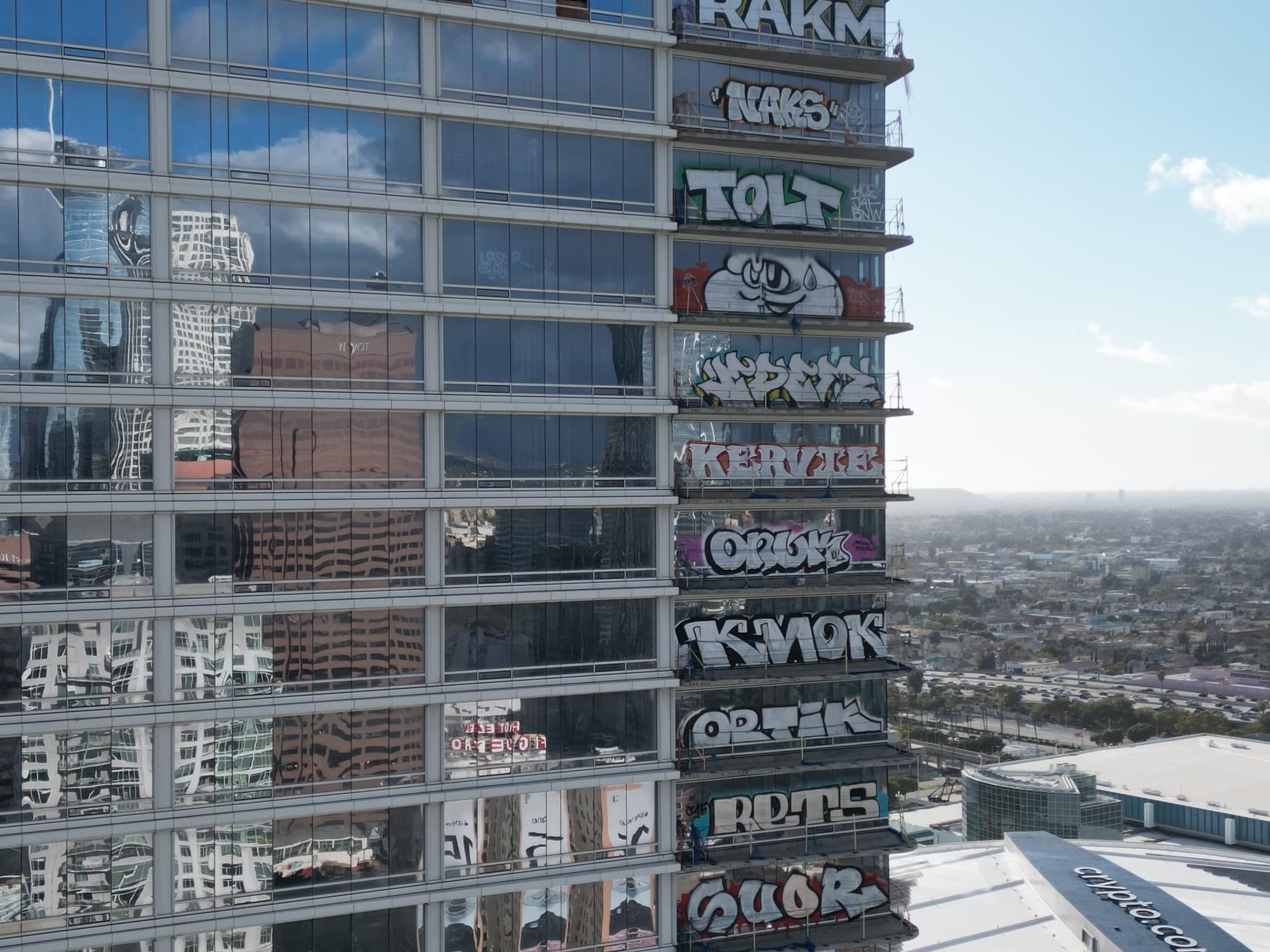 “Shit is a skyscraper playground," said Hopes, who took the center spot on the top of tower 1. "Let’s all get together and paint it up. Make LA graffiti history.”