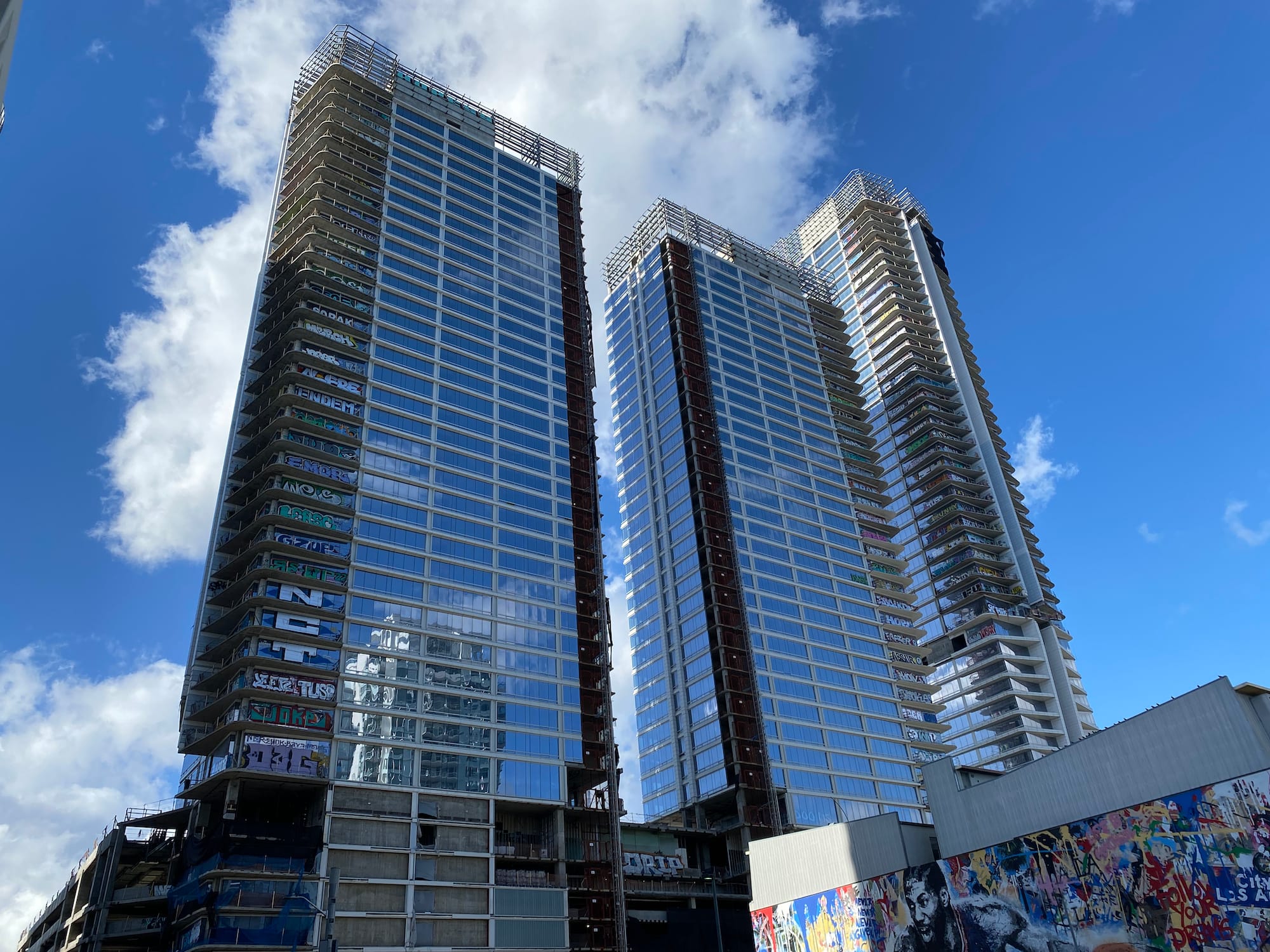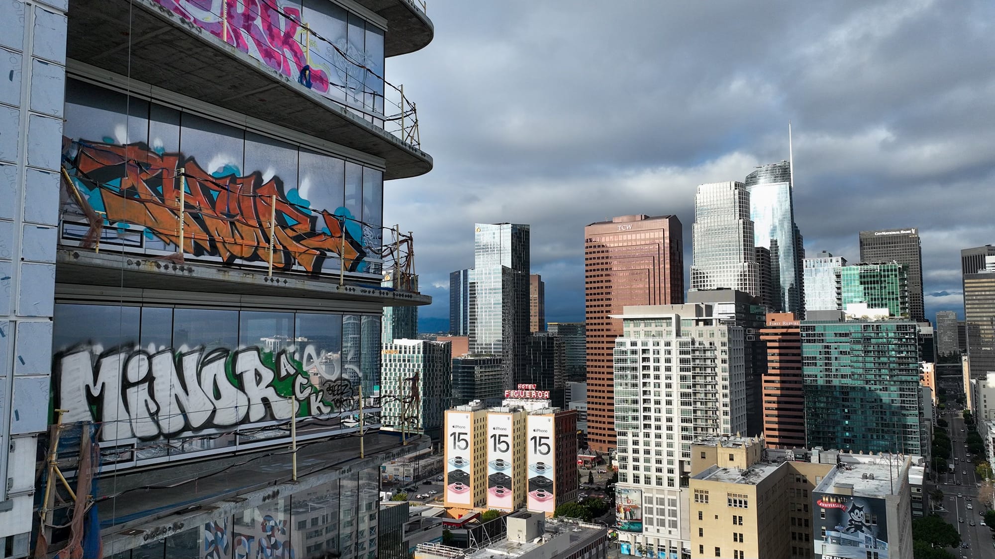 LOS ANGELES — Dozens of graffiti artists painted over at least 27 floors of an abandoned luxury real estate project in downtown LA last week. Spanning an entire square city block, Oceanwide Plaza was supposed to be a massive mixed-use development featuring more than 500 luxury condos and a five-star hotel occupying three towers reaching up to 55 stories. Begun in 2015, the $1 billion project was put on hold in 2019 when the Chinese-backed developer Oceanwide Holdings ran out of funding, and has sat vacant ever since.