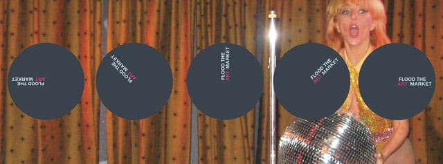 “Flood the Art Market” reacts to the commercialism of Art Basel as a kind of intervention, interrupting the flagrant consumerism of art that tends to saturate fairs with a philanthropic, communal effort to foster and sustain creativity under one non-gallery sponsored roof.