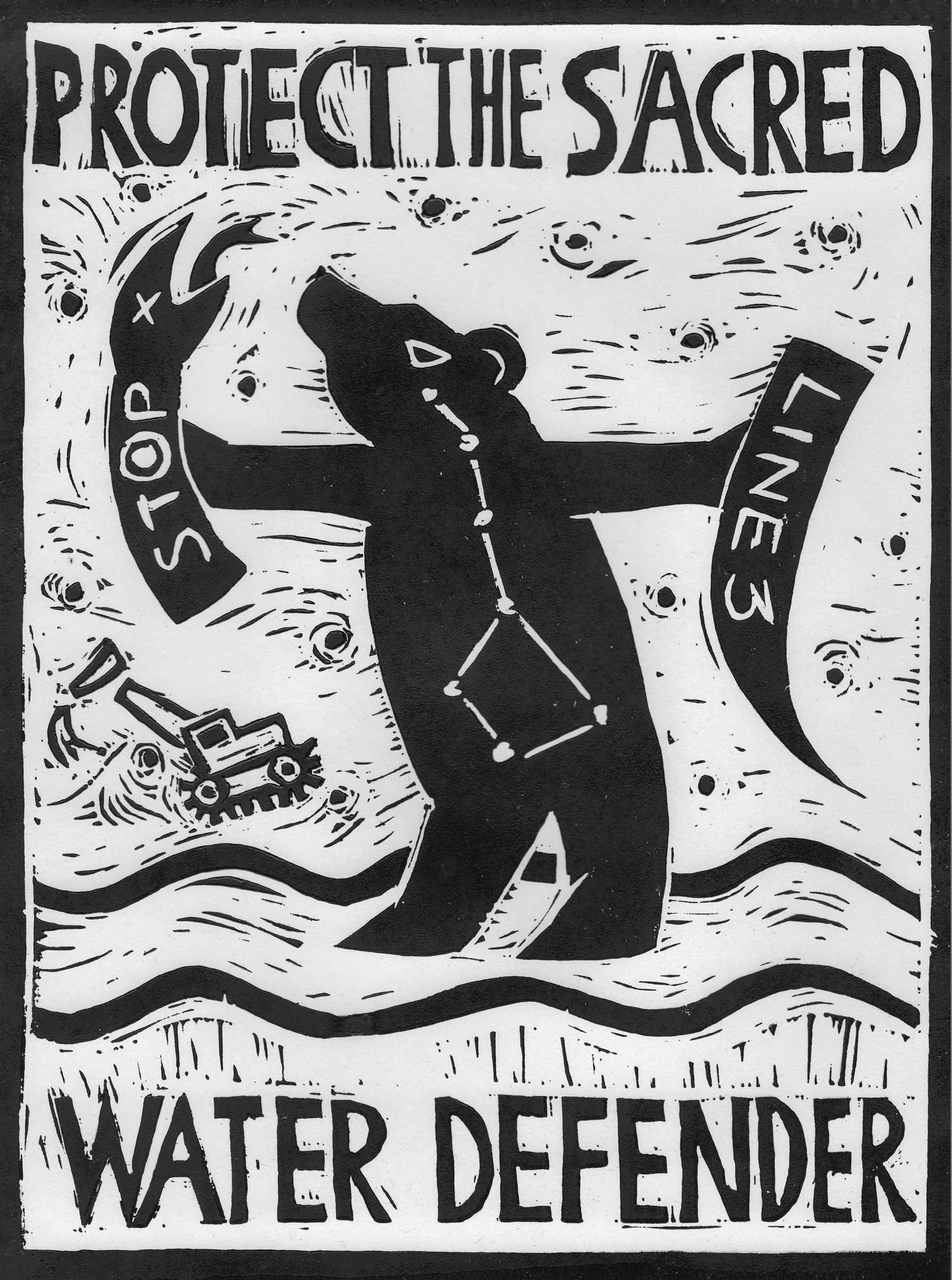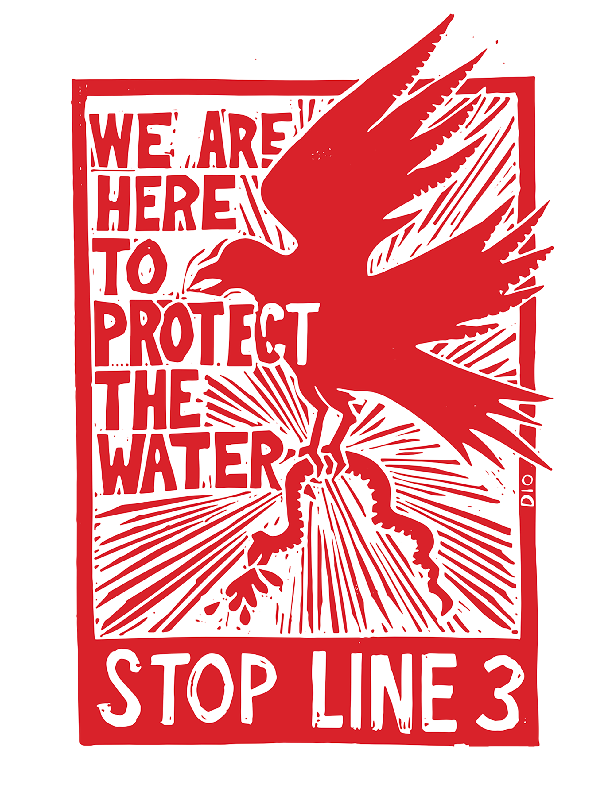 Throughout 2021, Indigenous water protectors and climate justice groups have distributed copyright-free artworks supporting recent anti-pipeline protests in Minnesota.