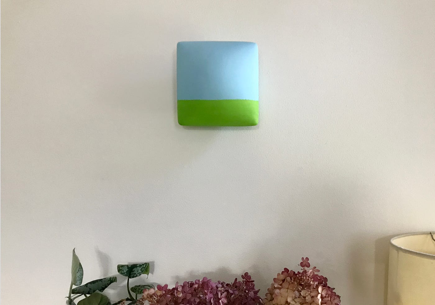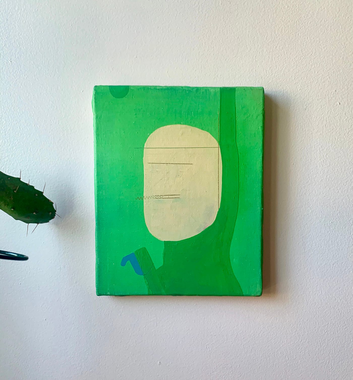 Elizabeth Glaessner (Brooklyn, New York): I have lived with this painting by Samuel Vanderveken for the last eight years. We met in 2012 during an artist residency in Leipzig and traded works. The painting is modest in size, around 12 by nine inches, but has the impact of something much larger. The shapes and verdant greens echo the leaves of the plants on the nearby windowsill. It seems to breathe, a notion that seems so vulnerable in this moment.