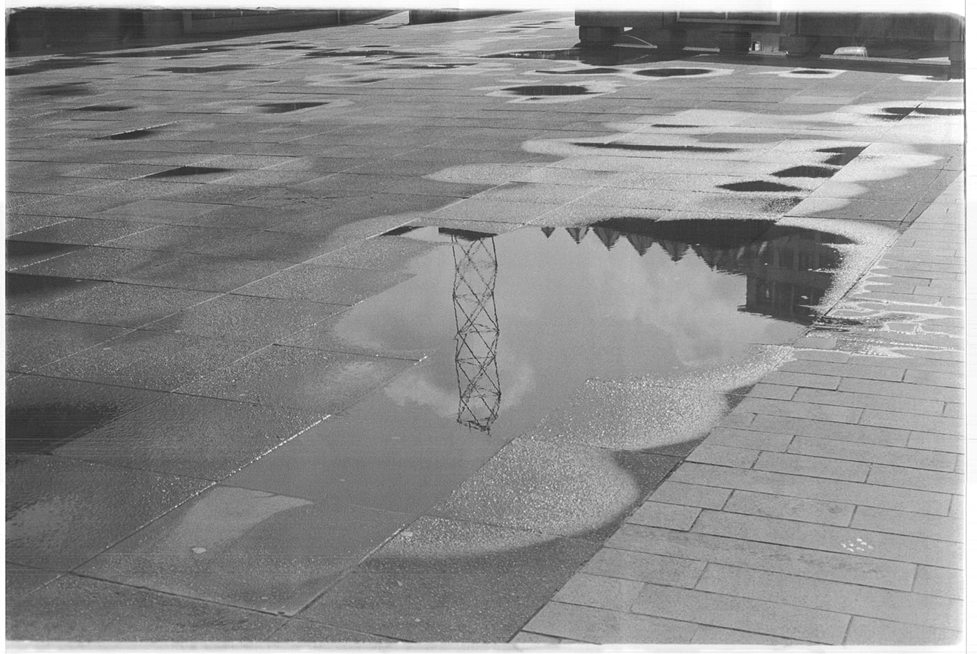 The Hayward, like so many art institutions, is in distress. But where is Vaughan’s and Dainton’s sculpture now? The gallery website says, “The tower is currently being refurbished to provide a visually stunning garden furniture seating area.” JP’s photograph made me consider what responsibilities these cultural centers have to the public. Like the puddle in the image, the original sculpture — ambiguous, bold and open to interpretation — has been allowed to evaporate.