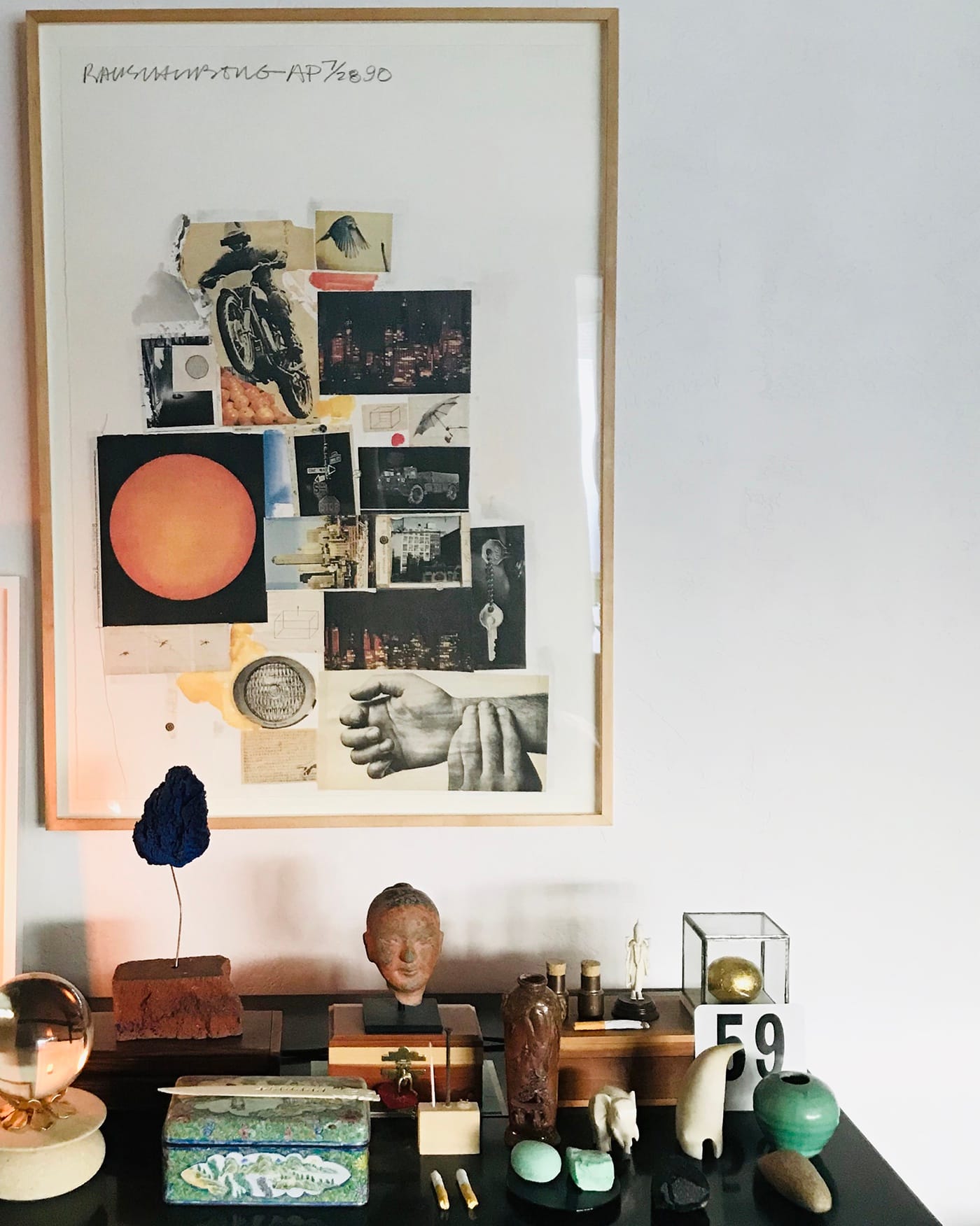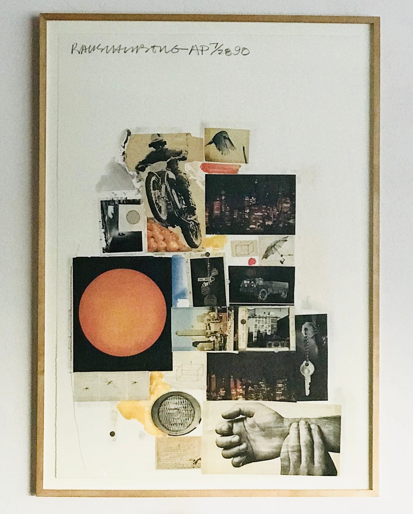Matt Magee (Phoenix, Arizona): In the mid-1990s I received this offset lithograph as a birthday present from Robert Rauschenberg. At the time, I was working for Bob in his studio and archive on Lafayette Street in Lower Manhattan; he often gave his own work as birthday gifts to his staff. This print, which uses photographic reproductions of images he’d clipped from newspapers and magazines, was also used for a poster for the silkscreen show curated by Roni Feinstein that opened at the Whitney in 1990.