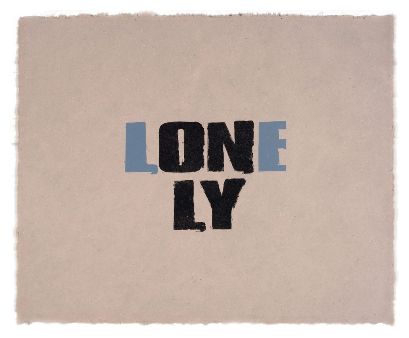 Kathe Burkhart (Amsterdam, Netherlands): Kay Rosen and I have been friends since we were stablemates at Feature back in the early 1990s, first in Chicago, where we both showed before Hudson moved his gallery to the first Broome Street location in New York City. In paintings, installations, drawings, prints, and publicly sited works, Rosen flips the meaning of familiar phrases and reveals the underside of the text. The title of this lithograph, “Only the Lonely,” references the classic 1961 song by Roy Orbison. The work gains layers of significance and poignancy during the collective isolation we’re experiencing during the coronavirus pandemic.