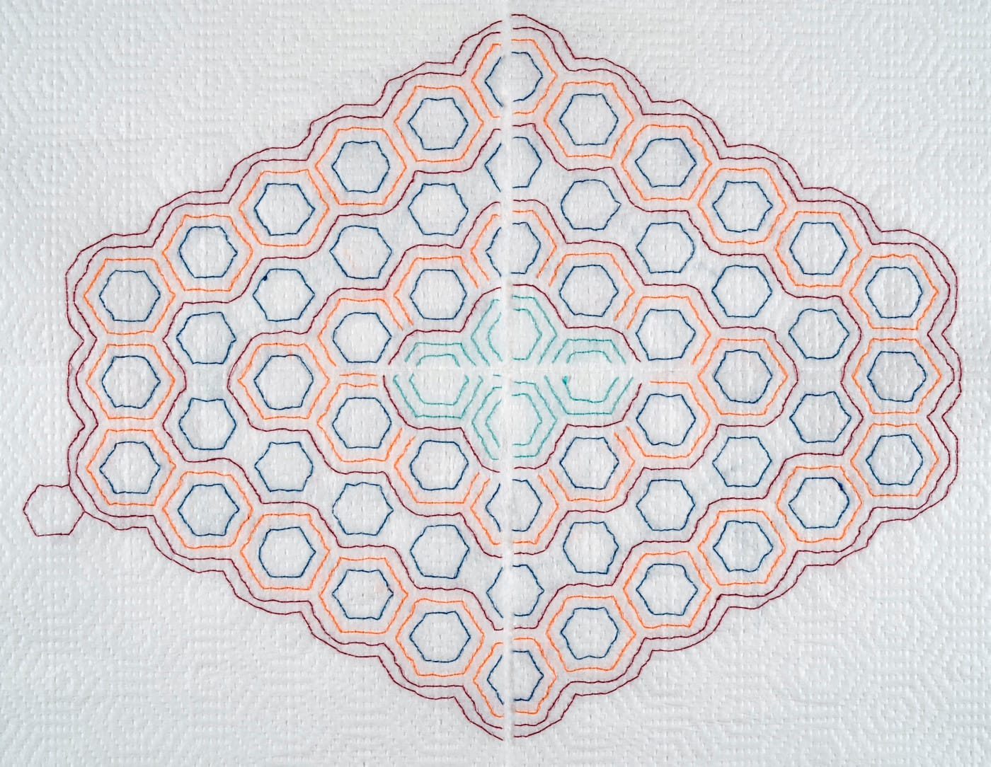 There is something both confident and vulnerable at play in “Rogue.” Formerly, I saw this work as symmetrical, refined, complete. Now I am noticing that little “extra” shape to the left, wittily hinted at in the title. Is it a mutation, a fringe character, or is it a seed venturing outside of the conforming pack, striking out solo for a while?