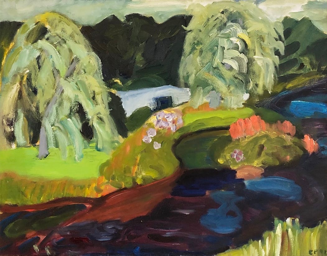 Ethel told me she painted it during a residency in Vermont; since her method was mainly observational, I assumed the subject was a river located there. Five years ago I discovered that the Gihon is one of three rivers that emerge out of Eden and — surprise! — not a landmark in Vermont. I had always considered the chaotic landscape a symbol of Ethel’s passion and tenacity to become a painter, the raging river a metaphor of her emotions.