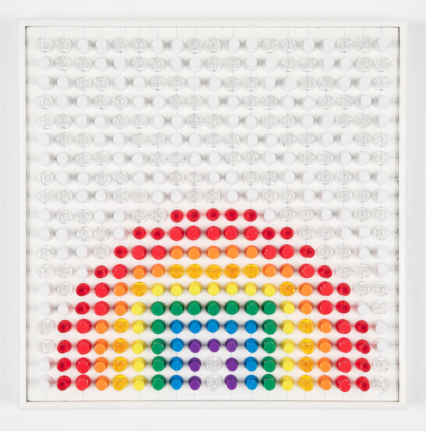 MiYoung’s “Rain-bow” hangs in our daughter Scout’s room, a gift on the occasion of Scout’s birth. This is a work that I see many times throughout the day, and it has come to have a much more personal meaning to me as this pandemic drags on. Its rainbow-shaped pushpins create a bright beacon of color and light during dark times. I have always enjoyed the strong conceptual and humorous nature of MiYoung’s work, but I have a new appreciation for the joy imbued in this piece, and that feels very important to me right now.