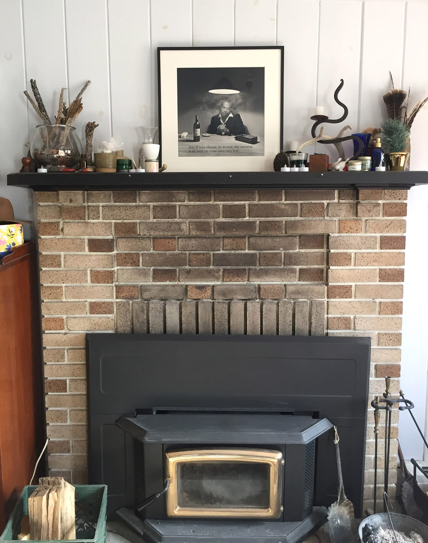 During COVID-19 quarantine we began some home renovations, so I temporarily took it off the wall and placed it on the mantle above the fireplace where it has remained since. I quite love it in this location at the center of our home, above the warmth of the fire, and surrounded by sentimental and random objects I have collected and kept.