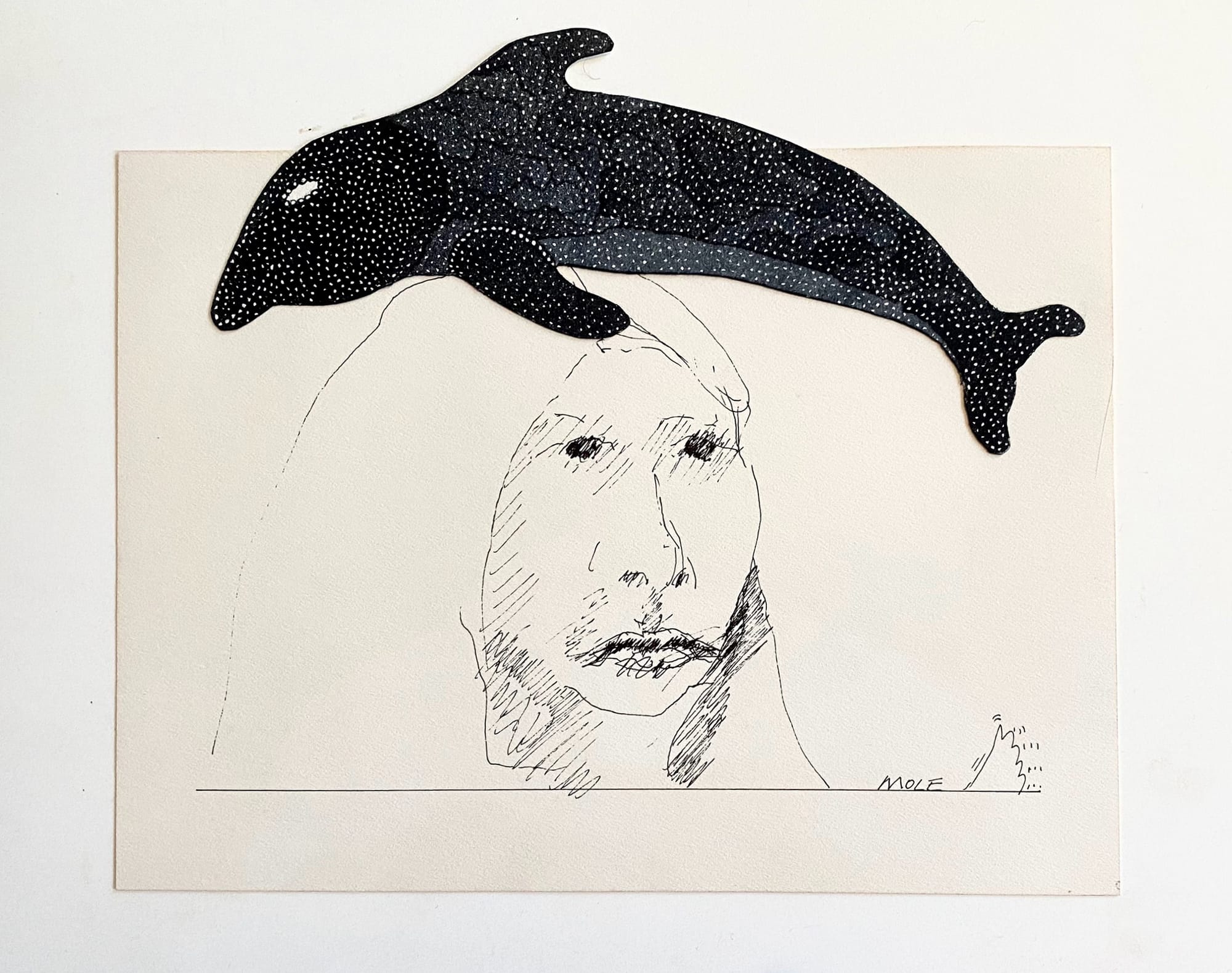 I loved the fiction that for a while, the earth was quiet, the world took a breath of fresh air… animals were taking back the planet, wandering out on the streets and highways in bewilderment… elephants in China were drinking wine and passing out in tea gardens. So now when I look at my wonderful composite drawing, I often think about the dolphins in Venice. I look at this dolphin leaping and sleeping on the top of my head. A little respite of magical thinking.