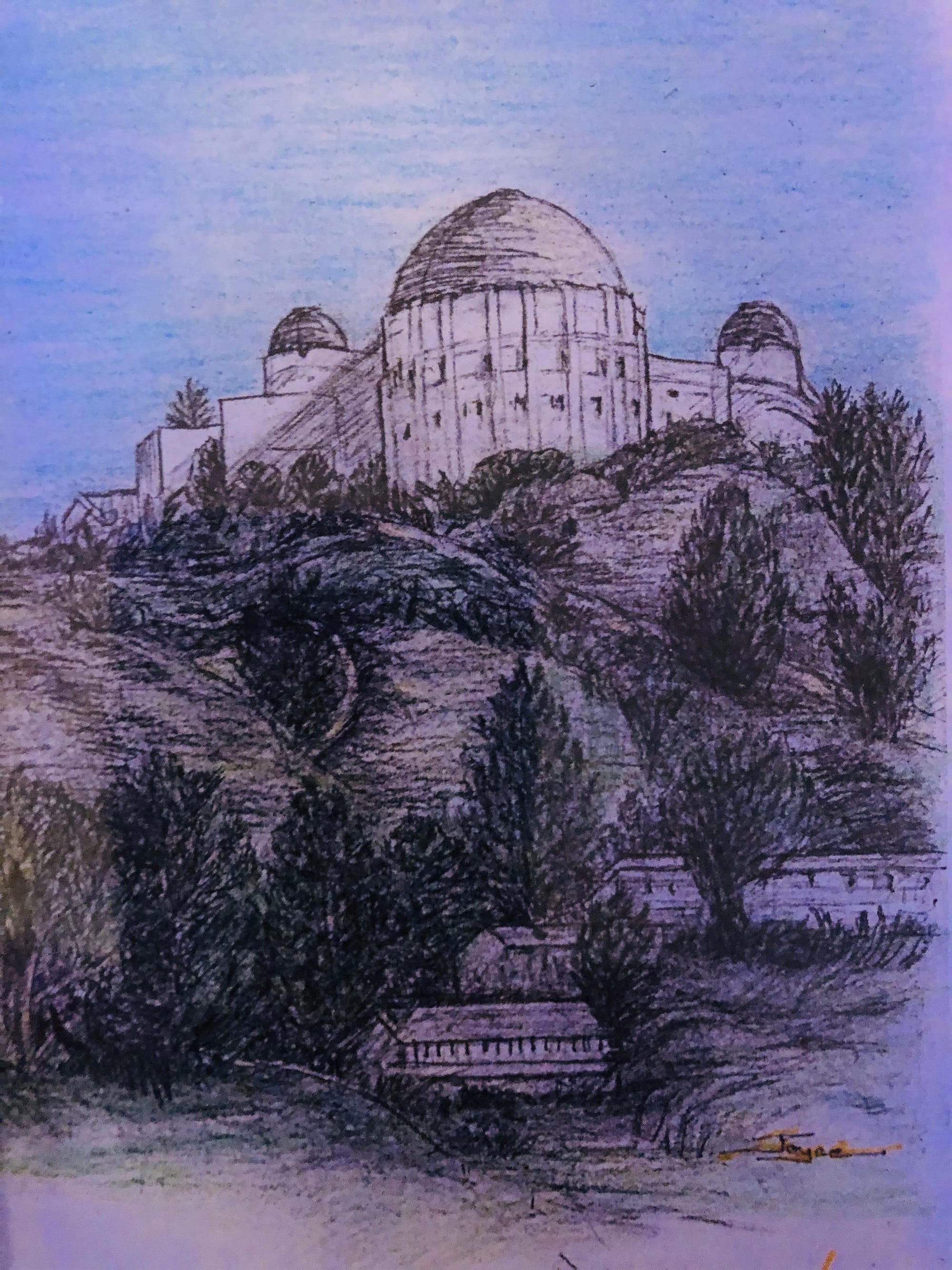 The pandemic has altered the way I see Joyce’s drawing of the Observatory. Many more homeless encampments have sprung up around my neighborhood since March. I have looked for Joyce, but she is no longer around. I heard that she had family nearby and I hope that she has reunited with them. I worry for those who are behind in rent and close to joining the growing number of homeless people looking for a way to survive. Joyce decided to make watercolors of birds and images of landmarks that were personally meaningful to her in exchange for a few dollars. I am glad my collection includes the very special work of this unique artist.
