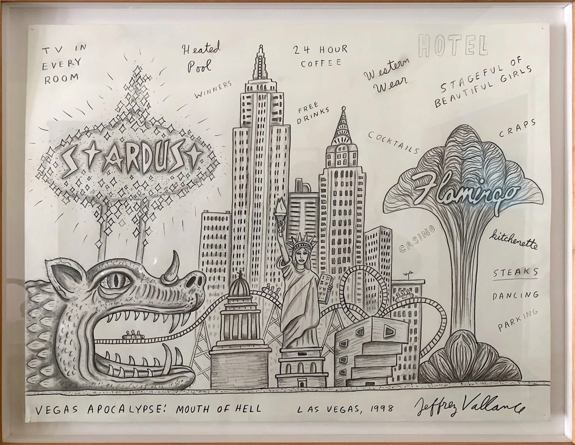 Both have extended titles. “The Peaceable Kingdom (after EdwardHicks)” is by Patrick Angus who died of AIDS in 1992. I never met him. “Vegas Apocalypse: Mouth of Hell” is by Jeffrey Vallance, an artist friend who makes work that I fondly call “silly profound.” Funny, but when I first hung them together, I immediately thought of that place in the Bible where God says, ”I place before you Life and Death . . . choose Life.”