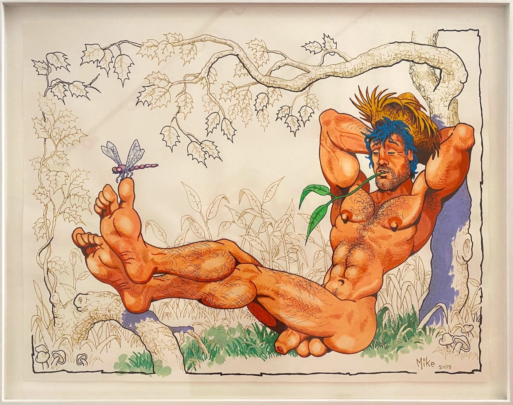 Louise Bonnet (Los Angeles, California): I have owned this drawing for only a year but I have been thinking about Mike Kuchar's work a lot for years, and looking at it every day makes me happy, because it is such a happy image and reminds me of what I thought when I saw a drawing of his for the first time about a decade ago.