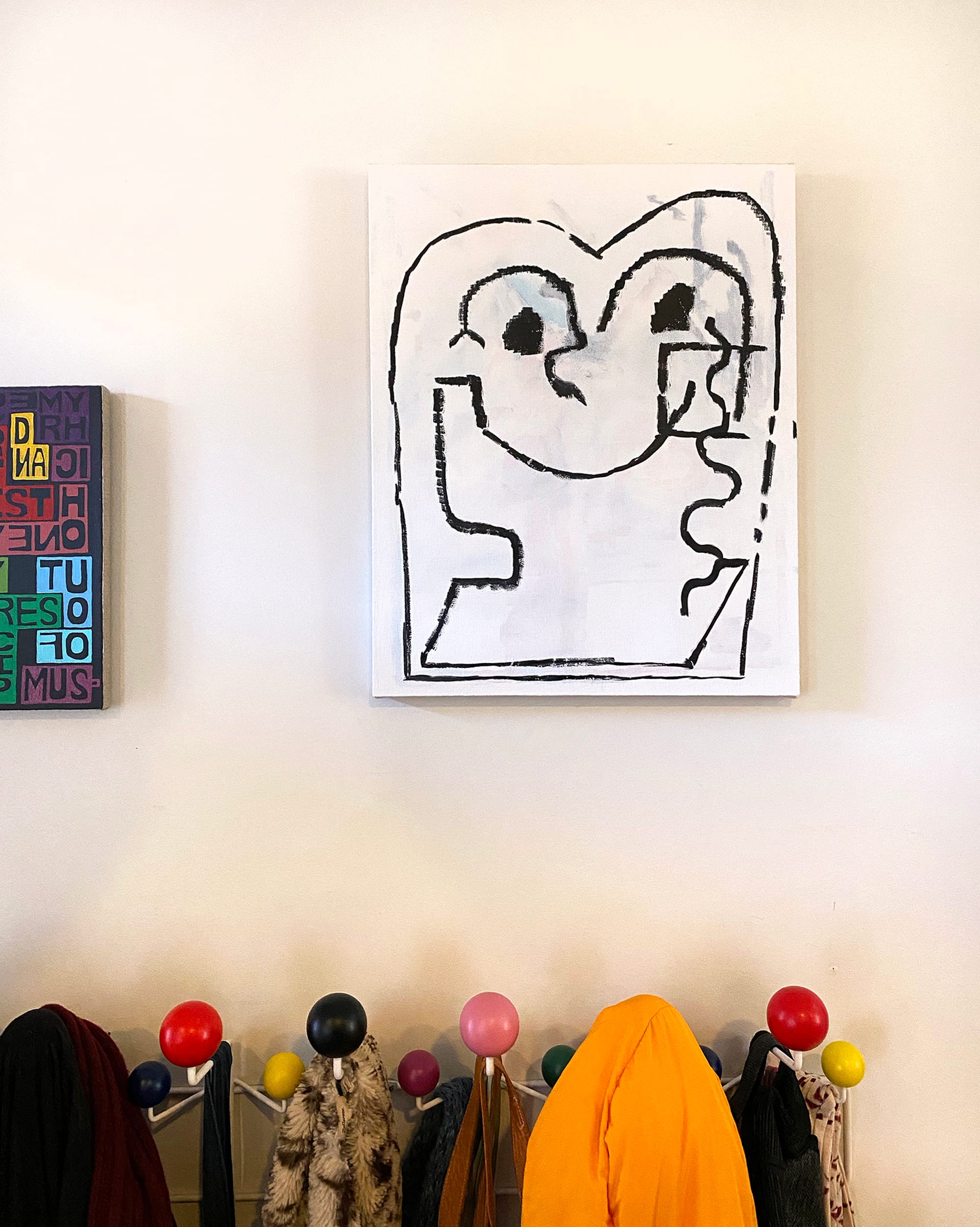 Melissa Dadourian (Brooklyn, New York): I have lived with “The Original Smiler,” a painting by EJ Hauser, since 2016. But it never came to my rescue quite as it has during these past months of the pandemic. The almost black and white painting has a raw simplicity and innocence; its humor is like a breath of clean air. The painting is the first thing I see when I arrive home, as it hangs right above the coat rack. I look up, smile, take off my mask, and finally let loose.