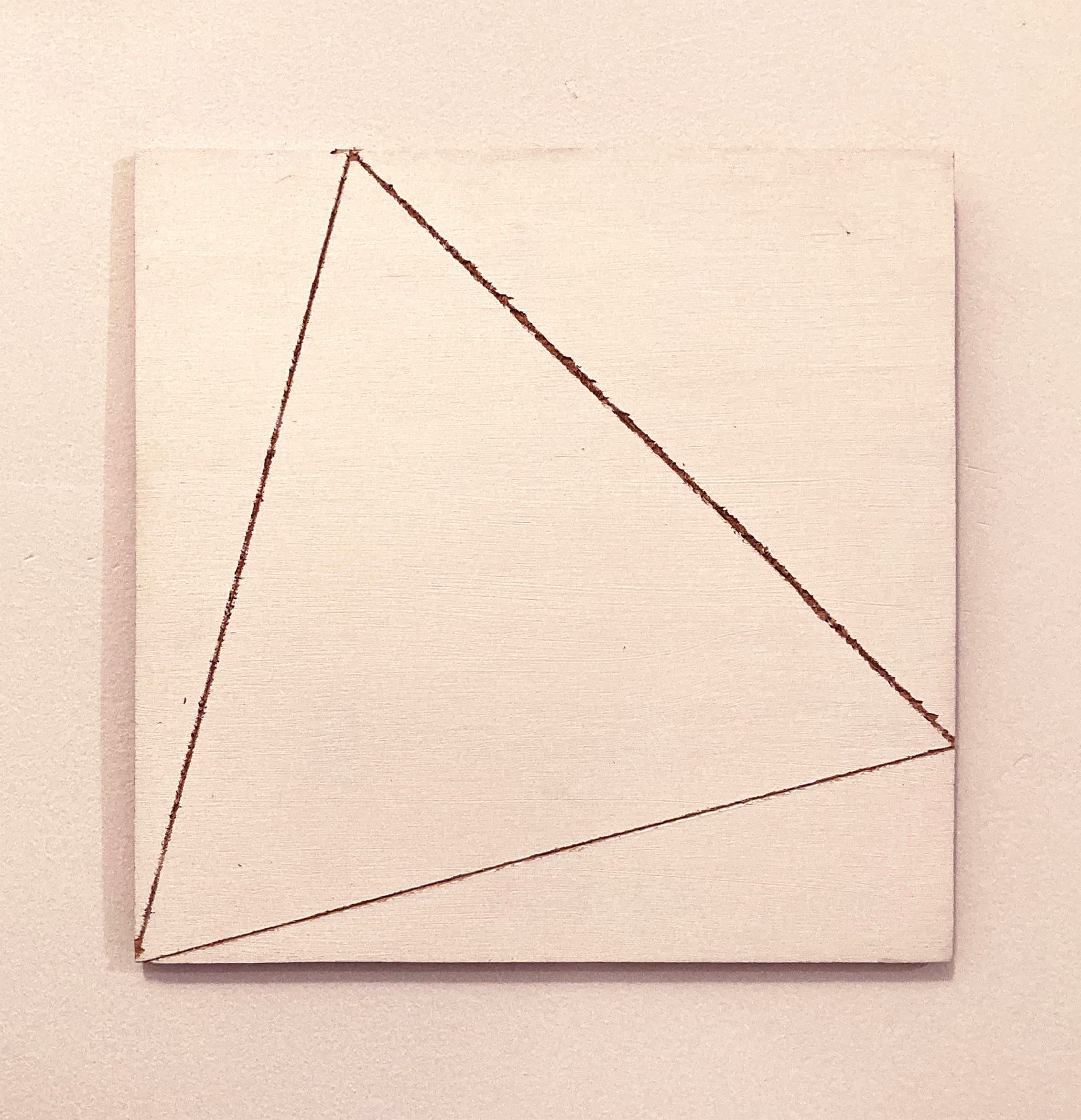 Cris Gianakos (New York City): Every morning when I get up and head for the shower I pass a wall with a collection of artworks. In this group is a François Morellet titled “gravure sur bois no.1.” It is a very reductive work: a quarter-inch plywood panel, front surface painted flat white, incised with an equilateral triangle. The material of the wood shows through the incision in a rough way. The economy of the execution keeps it in the concept stage. As it turned out, it was a prototype of a successful series to come. I acquired “gravure sur bois no.1” at the Independent Curators International Tenth Anniversary Benefit Auction in the late 1980s. As soon as I saw it I had to have it and in fact overbid in my enthusiasm! I got it!